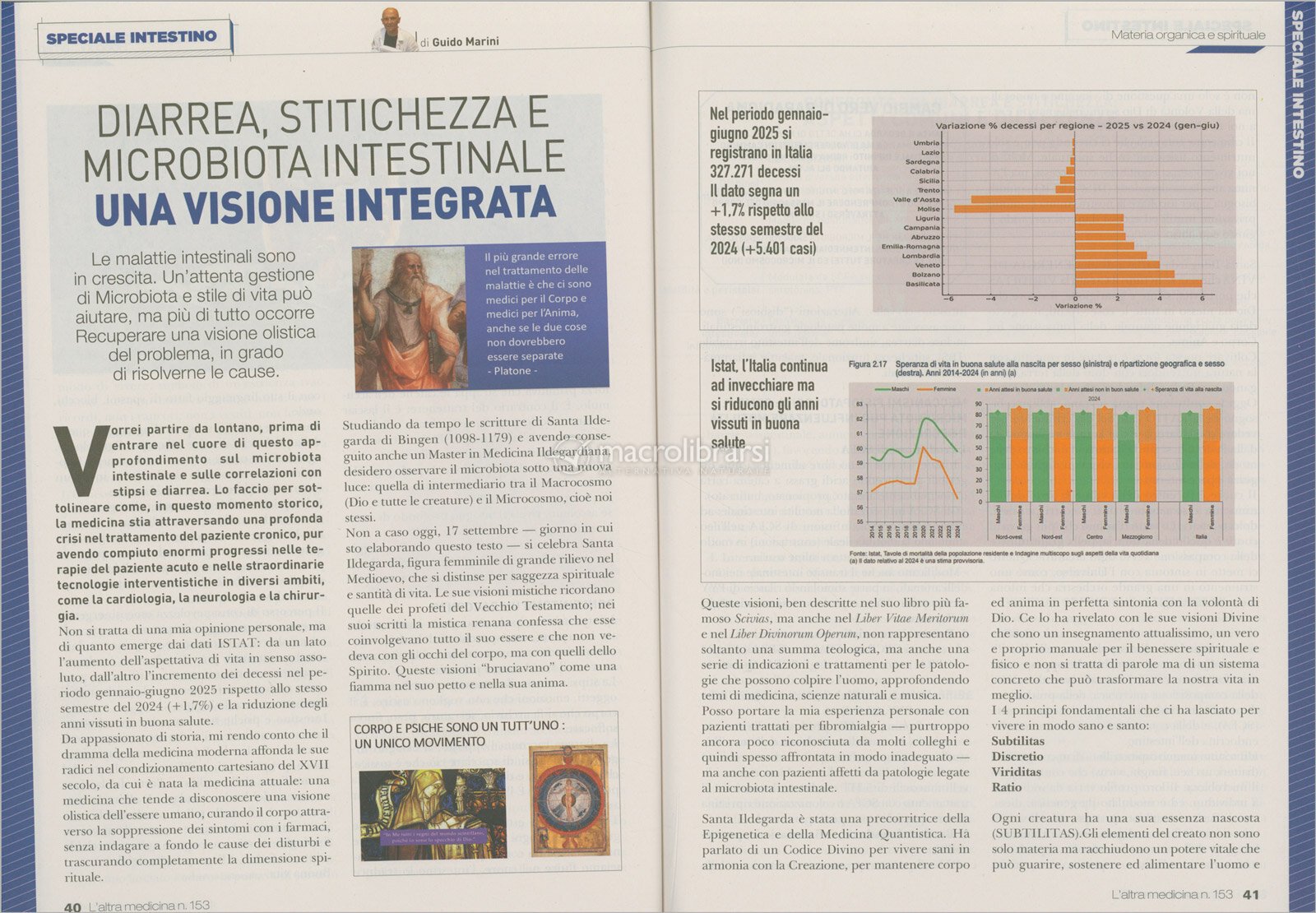 In questo numero, L’Altra Medicina dedica un approfondimento completo al tema della salute intestinale, offrendo strumenti naturali, conoscenze scientifiche e pratiche quotidiane per ritrovare armonia nel “secondo cervello” del nostro corpo.