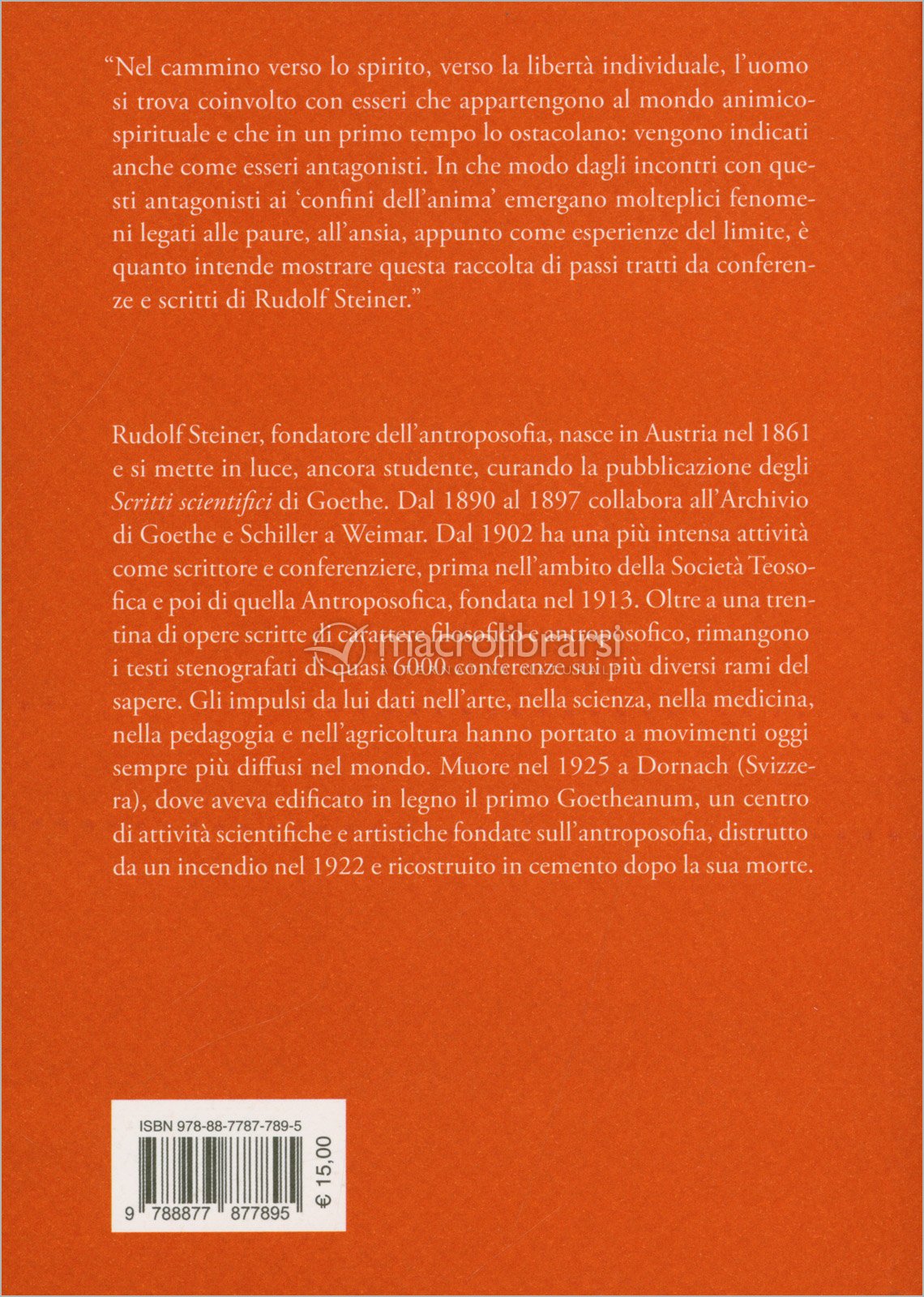 In che modo dagli incontri con questi antagonisti ai ‘confini dell’anima’ emergano molteplici fenomeni legati alle paure, all’ansia, appunto come esperienze del limite, è quanto intende mostrare questa raccolta di passi tratti da conferenze e scritti di Rudolf Steiner.