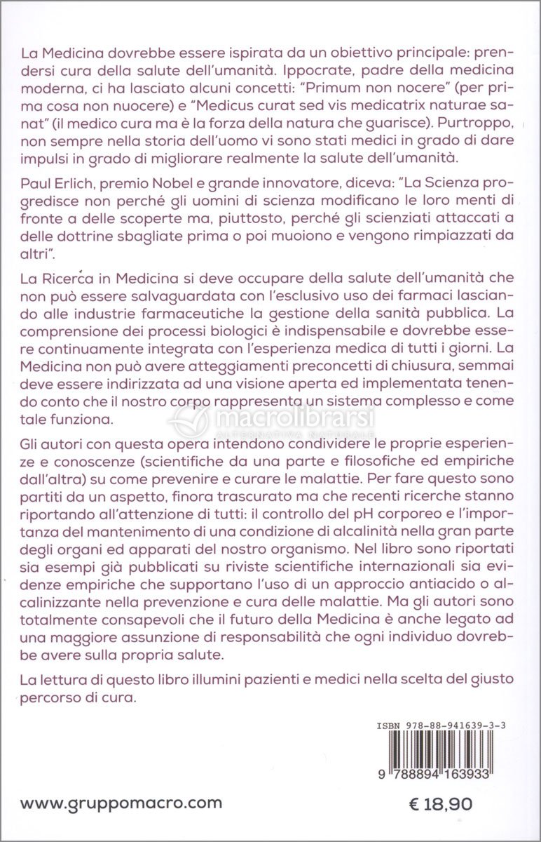 Nel libro sono riportati sia esempi già pubblicati su riviste scientifiche internazionali sia evidenze empiriche che supportano l’uso di un approccio antiacido o alcalinizzante nella prevenzione e cura delle malattie. Ma gli autori sono totalmente consapevoli che il futuro della Medicina è anche legato ad una maggiore assunzione di responsabilità che ogni individuo dovrebbe avere sulla propria salute.
