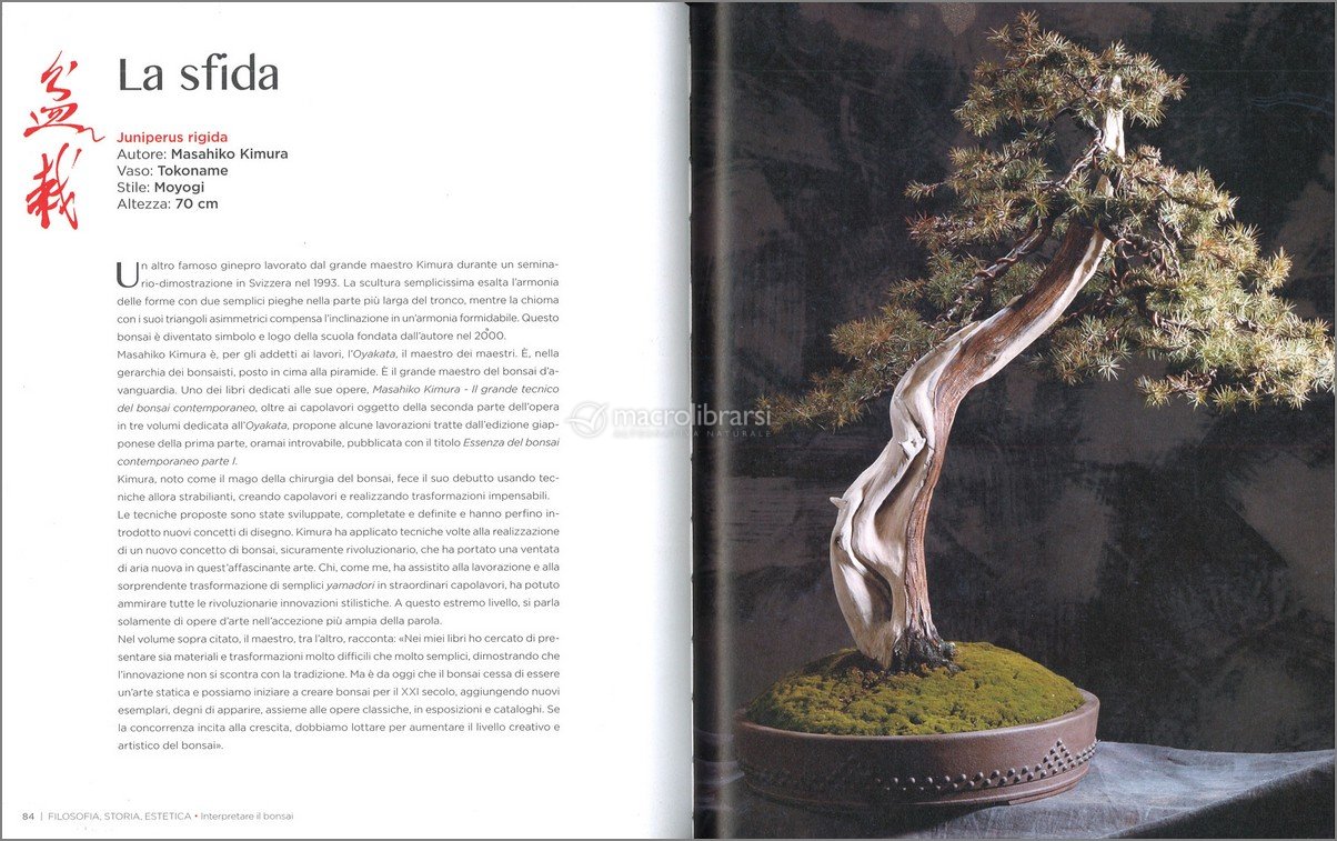 Grazie alla vasta competenza dell'autore, esperto bonsaista, istruttore, giudice e critico estetico nelle esposizioni, il lettore viene guidato alla scoperta e all'interpretazione di alcuni dei migliori esemplari di scuola italiana, riprodotti all'interno delle schede illustrate che corredano l'opera.
