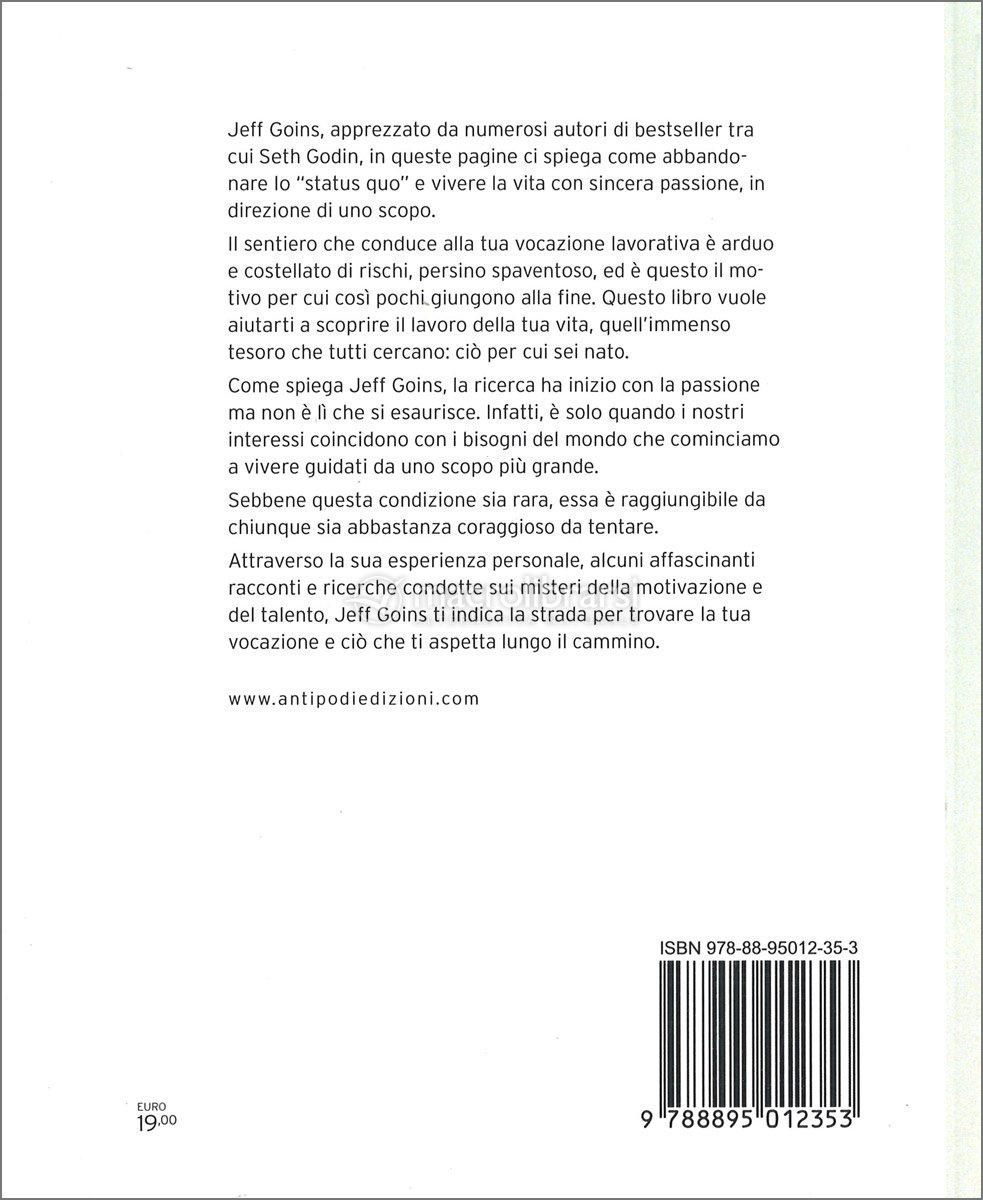 Jeff Goins, apprezzato da numerosi autori di bestseller tra cui Seth Godin, in queste pagine ci spiega come abbandonare lo “status quo” e vivere la vita con sincera passione, in direzione di uno scopo.