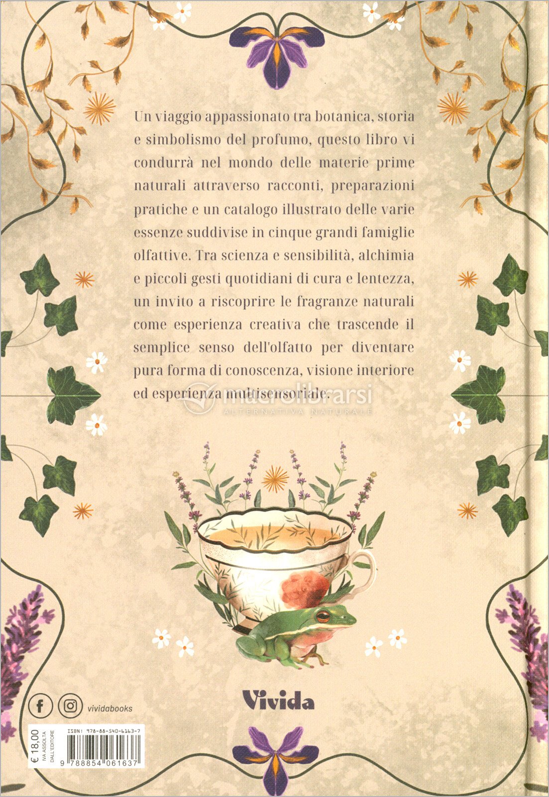 Tra erbe, fiori, resine e spezie, il testo guida passo dopo passo nella trasformazione delle materie prime in fragranze vive, costruite con attenzione e intenzione. Ma ciò che lo distingue è il modo in cui questo processo viene raccontato: non come tecnica isolata, ma come esperienza sensoriale completa, quasi rituale.