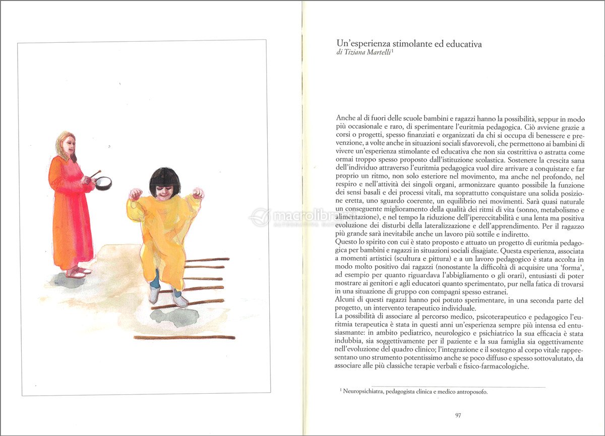 Il libro, tripartito, parte dall'esperienza artistica, raccogliendo una serie multiforme di testimonianze d'autore, e privilegiando l'aspetto rclazionale-spettacolare. Il secondo aspetto preso in esame è quello, altrettanto cruciale, dell'euritmia in ambito pedagogico e sociale, il cui percorso l'autrice tratteggia in modo capillare. Chiude una complessa e dettagliata trattazione del vasto campo terapeutico, con l'analisi di una nutrita casistica nella quale appaiono evidenti i benefici apportati dall'euritmia curativa.