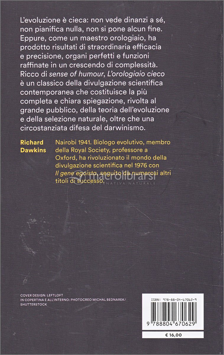 "L'orologiaio cieco" è un libro originale, ricco di informazioni, paradossi, osservazioni inaspettate e costituisce la più completa e chiara spiegazione della teoria dell'evoluzione e della selezione naturale, oltre che una circostanziata difesa del darwinismo dai numerosi attacchi di cui oggi è fatto segno."