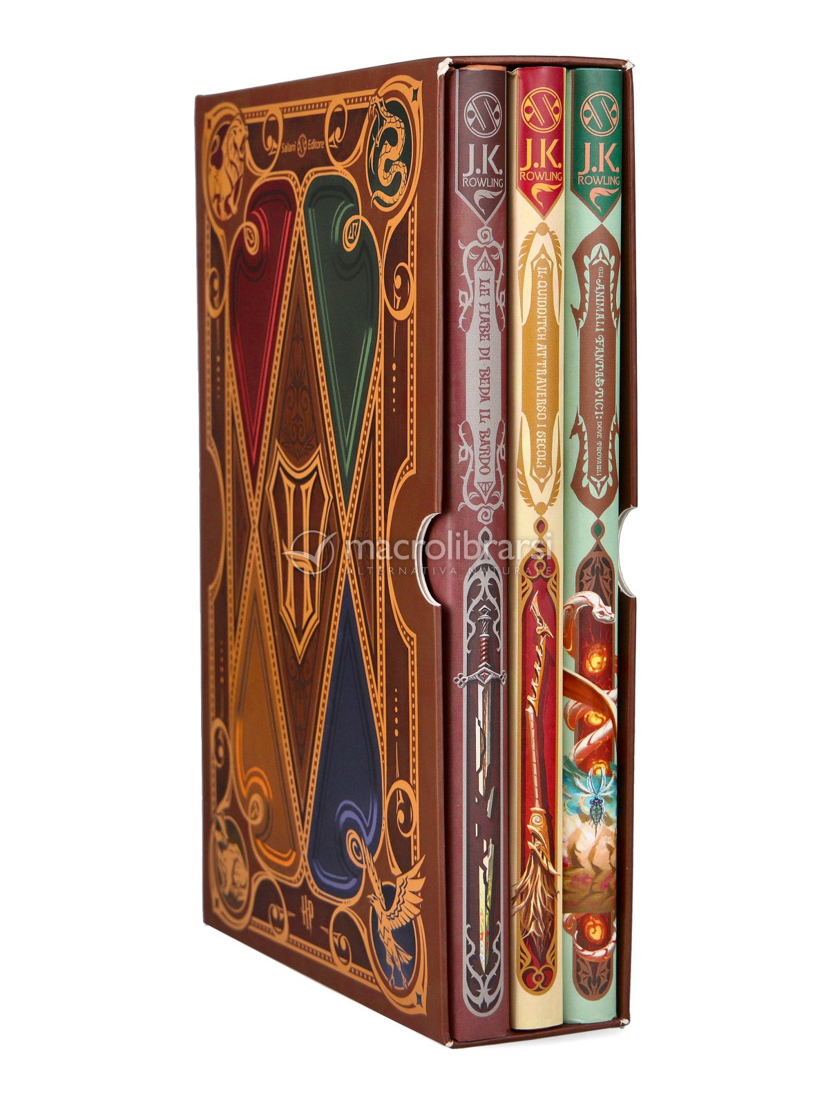 Riuniti in un unico cofanetto, questi tre libri sono ideali da collezionare e perfetti da regalare a chi ama Hogwarts, i suoi personaggi e le sue storie.