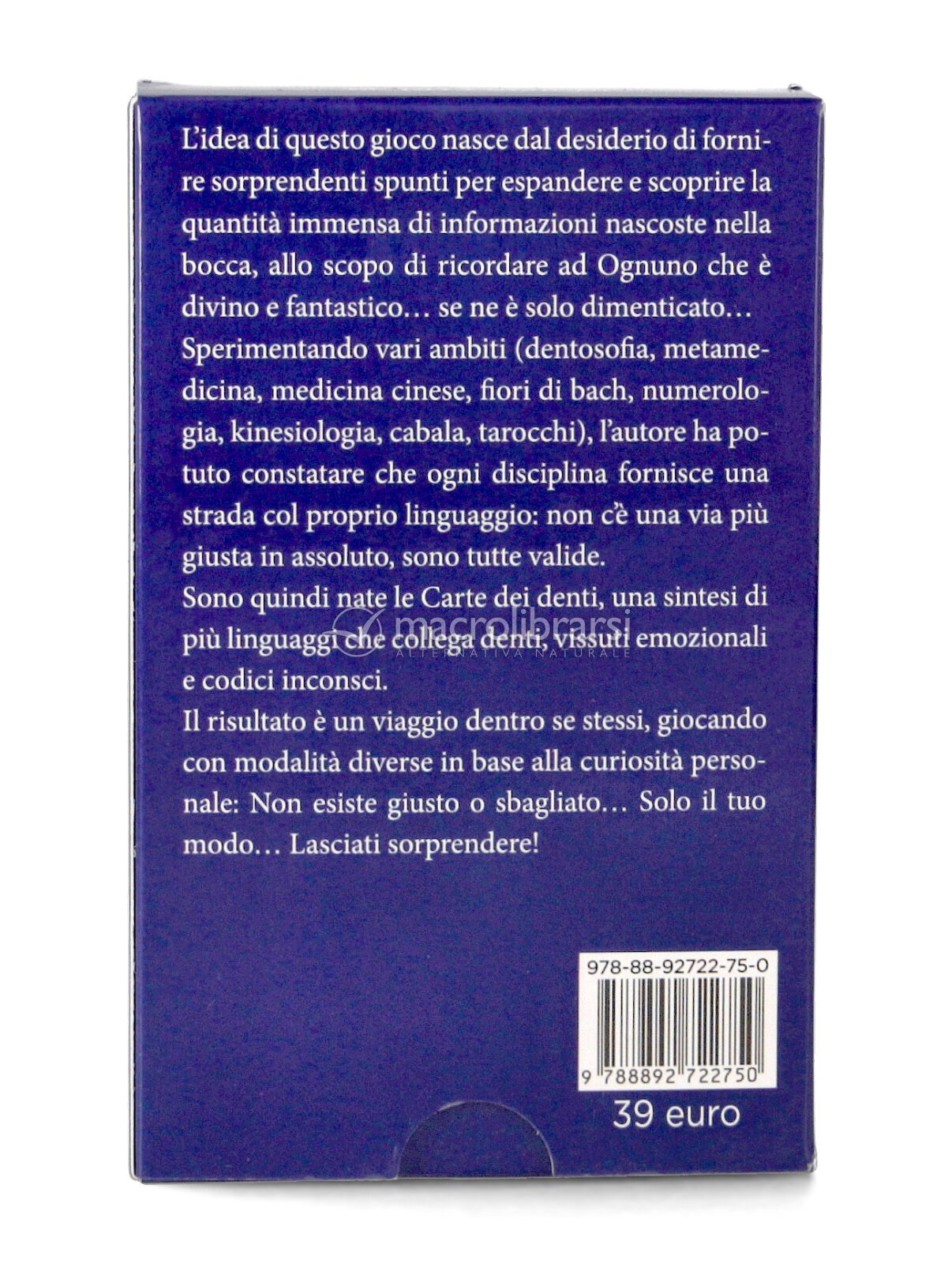Questo mazzo di carte è molto particolare, traspare il grande lavoro ed esperienza dell'autore; lo trovo molto utile perché riunisce in un unico mazzo tante informazioni diverse, che aiutano a prendere consapevolezza di ciò che l'inconscio manifesta attraverso i denti. Le carte sono plastificate, spesse e robuste. Sono grandi per cui non è semplicissimo mescolarle, ma la carta che deve uscire uscirà... anche se non le si mescola bene ;) Il libricino è molto stringato, sarebbe utile un manualetto più esaustivo, ho trovato alcune spiegazioni poco chiare, forse perché troppo sintetiche. Non ho ben capito come si collegano i numeri sulle carte ai 9 archetipi elencati nella tabella allegata al mazzo. Sarebbe meglio magari fornire spiegazioni più dettagliate e chiare in questo senso. E' utile avere una conoscenza pregressa della sapienza delle lettere ebraiche, presenti ma non approfondite. Ci sono davvero tante informazioni, ma manca una chiave di lettura organica: così rischiano di restare un po' scollegate.