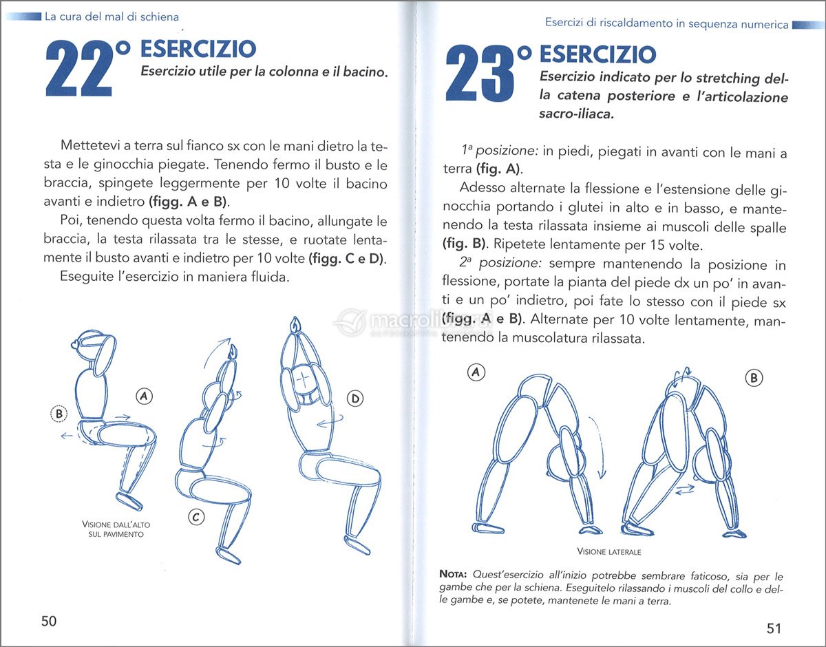 Adatti ai sedentari come agli sportivi, ai giovani come agli anziani, questi esercizi rivelano la loro efficacia non solo in occasione degli stati dolorosi già in atto, ma anche come preziosi strumenti di prevenzione contro ricadute o eventuali problemi futuri.