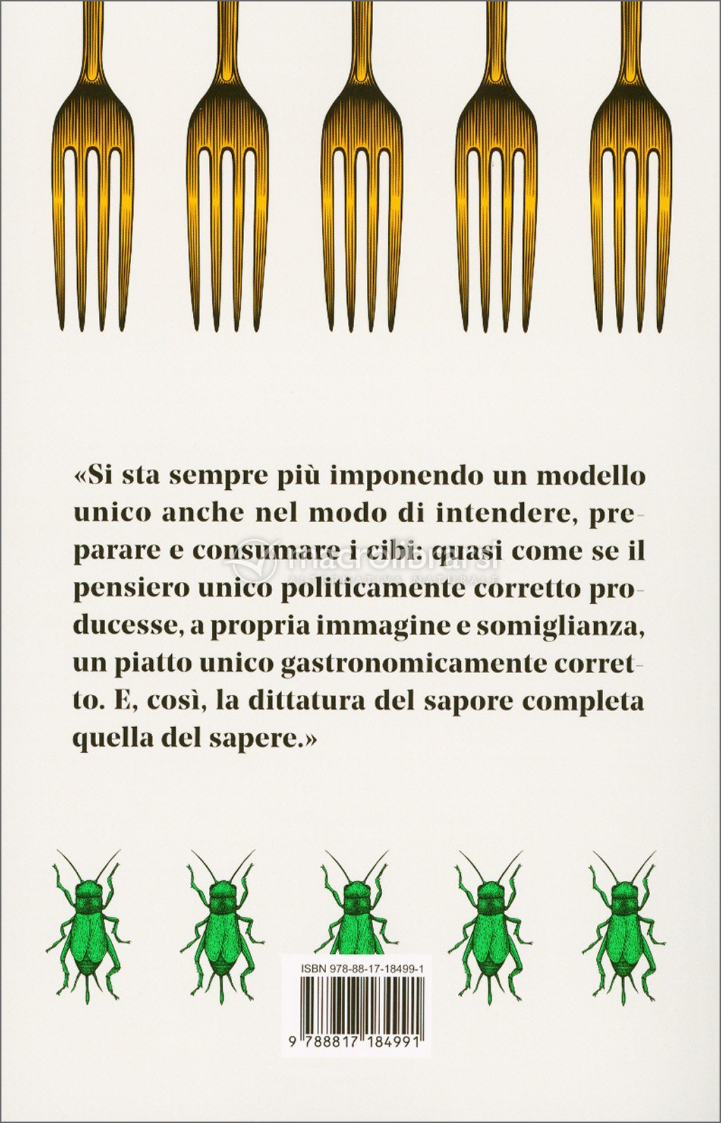 Hamburger di carne sintetica, panini con i grilli, patatine di farina di mosca: in nome del rispetto dell’ambiente e della salute, il nuovo menù del mondo globalizzato mette al bando ciò che per secoli ha plasmato la nostra identità alimentare, dal vino all’olio d’oliva, dalle carni al pane, annientando ogni diritto alla pluralità, alla differenza e al locale.