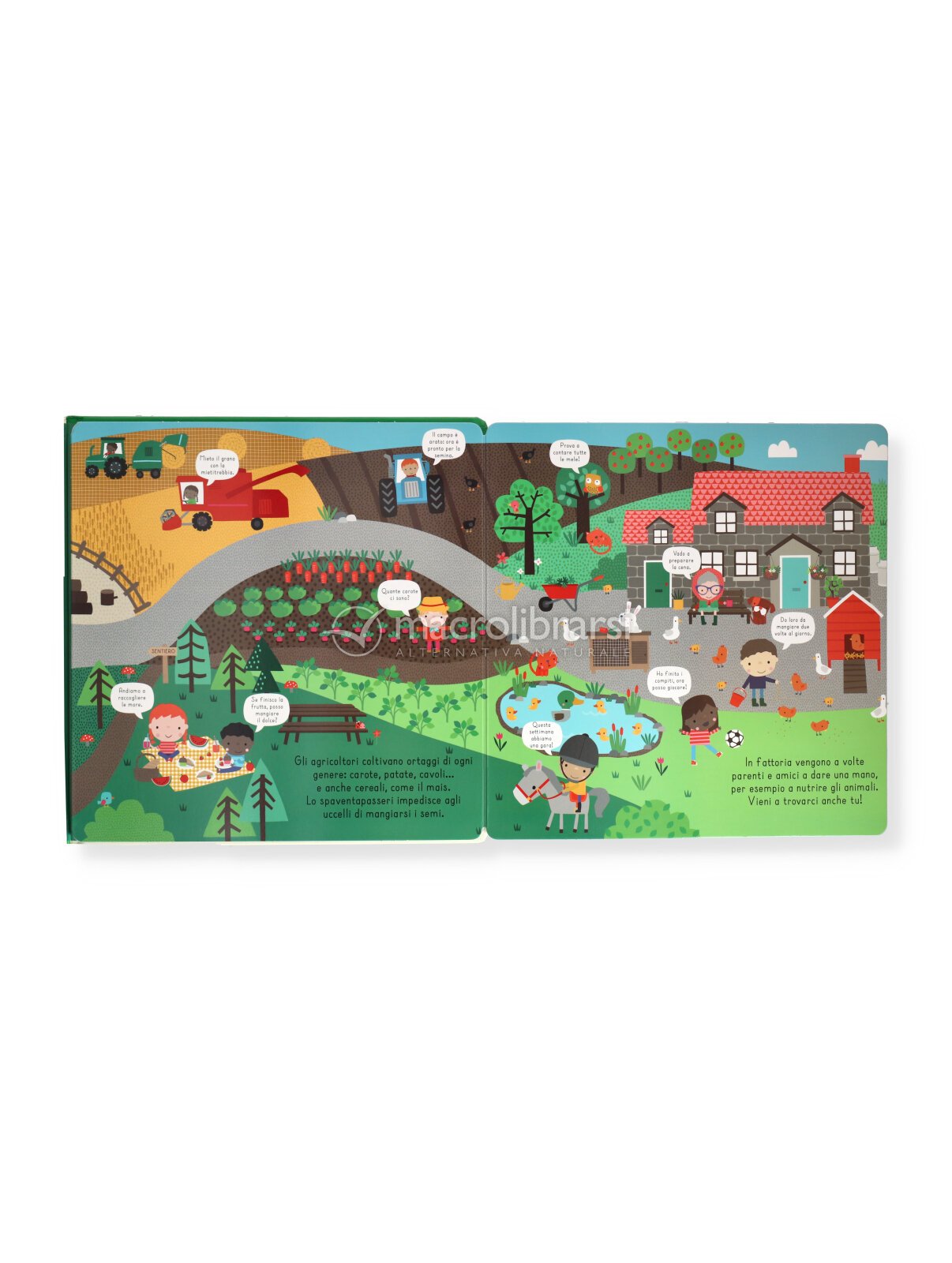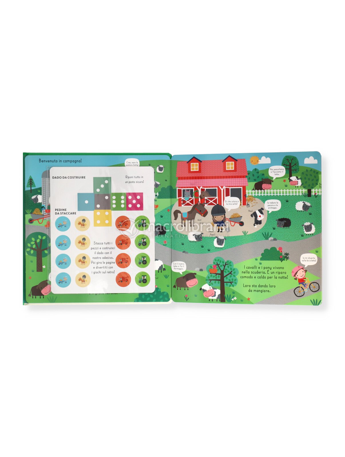 Grazie ai grandi scenari pieghevoli a colori, il libro si apre e si trasforma in uno spazio di gioco dove esplorare stalle, campi e cortili.