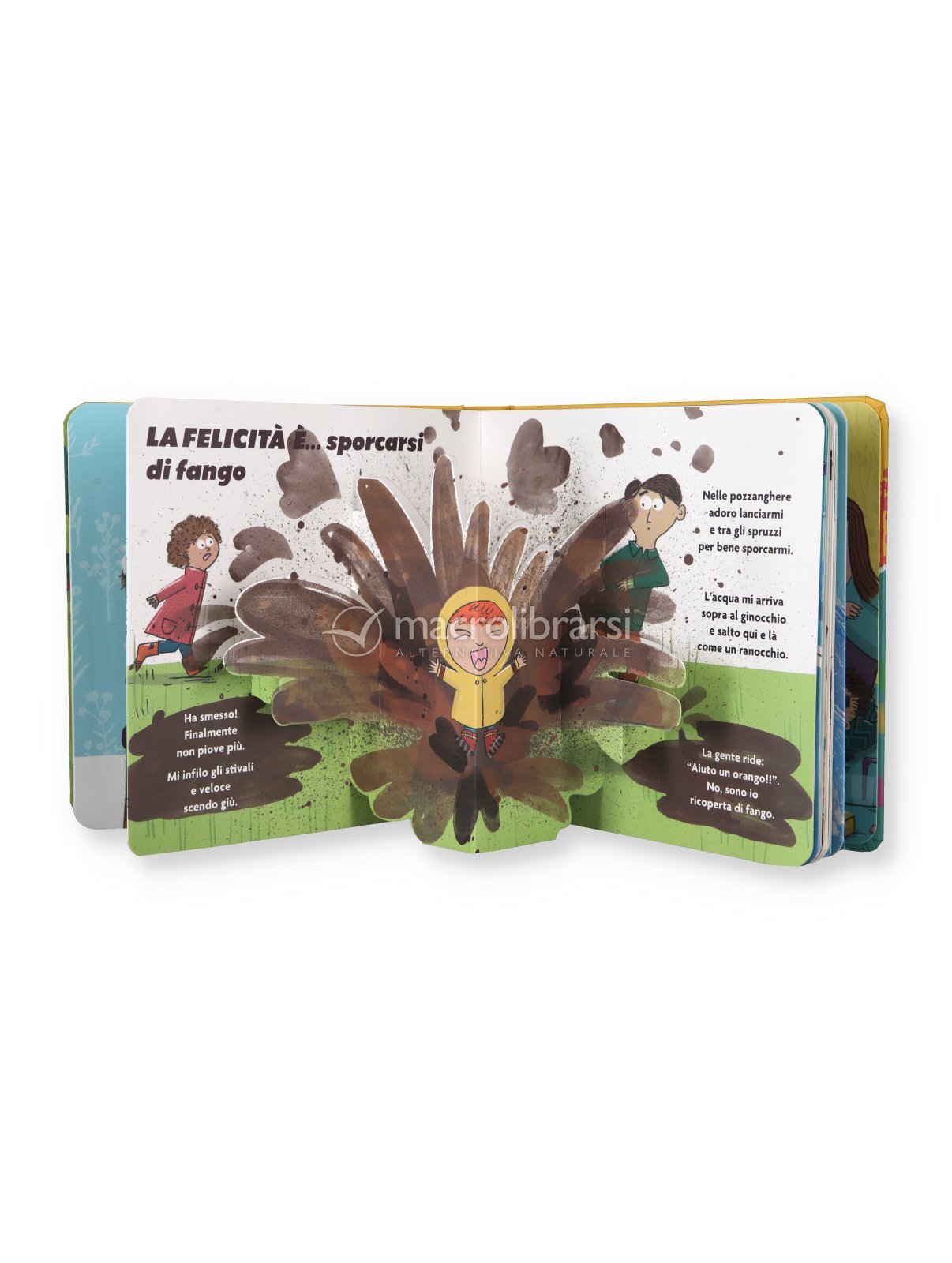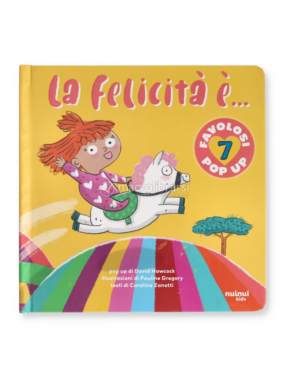 La felicità è.... di Carolina Zanotti e David Hawcock è un libro pop-up con 7 aperture sorprendenti, pensato per trasformare ogni pagina in un gesto di scoperta.