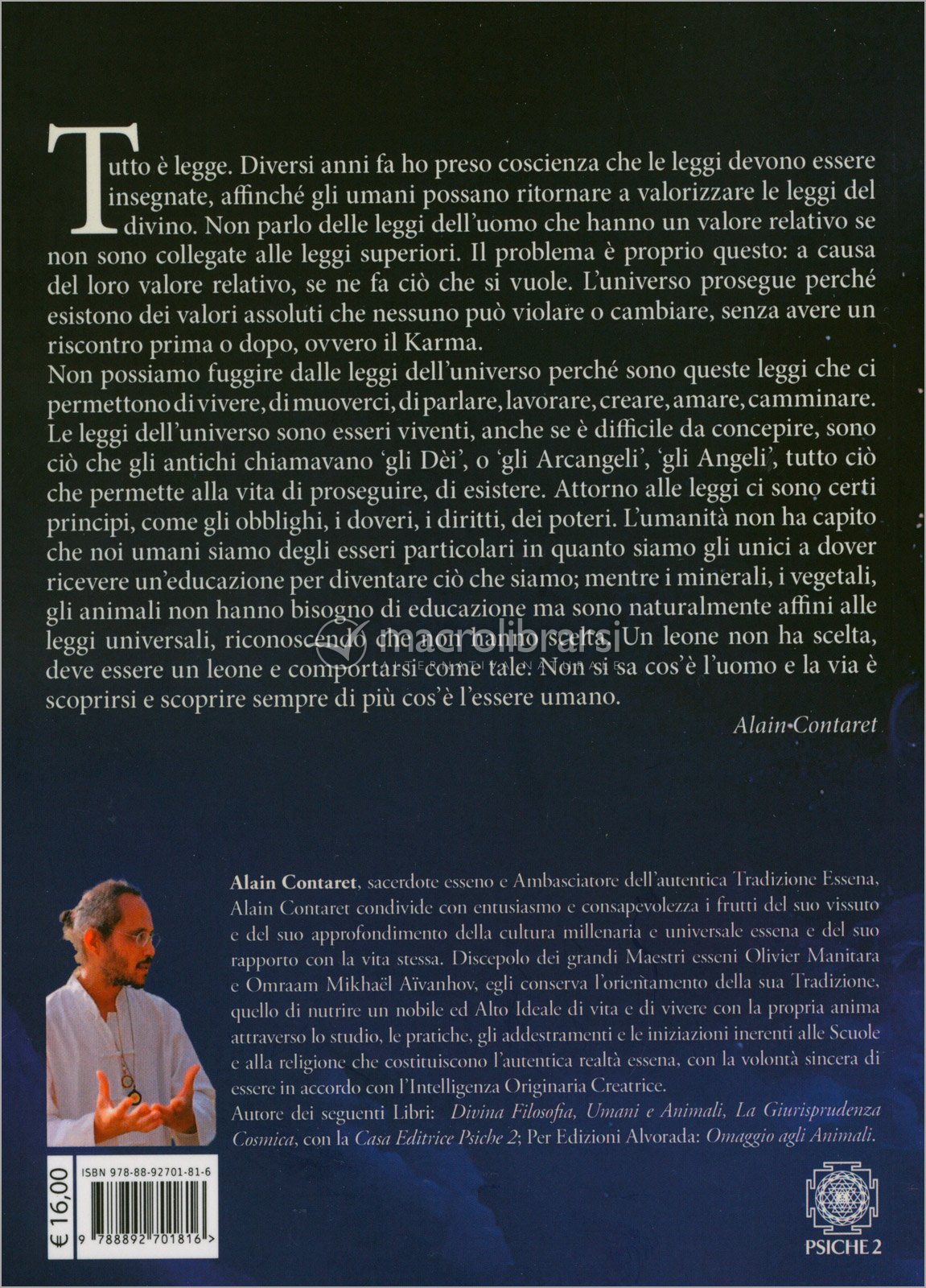 Alain Contaret, sacerdote esseno e Ambasciatore dell'autentica Tradizione Essena, Alain Contaret condivide con entusiasmo e consapevolezza i frutti del suo vissuto e del suo approfondimento della cultura millenaria e universale essena e del suo rapporto con la vita stessa. Discepolo dei grandi... Leggi di più...