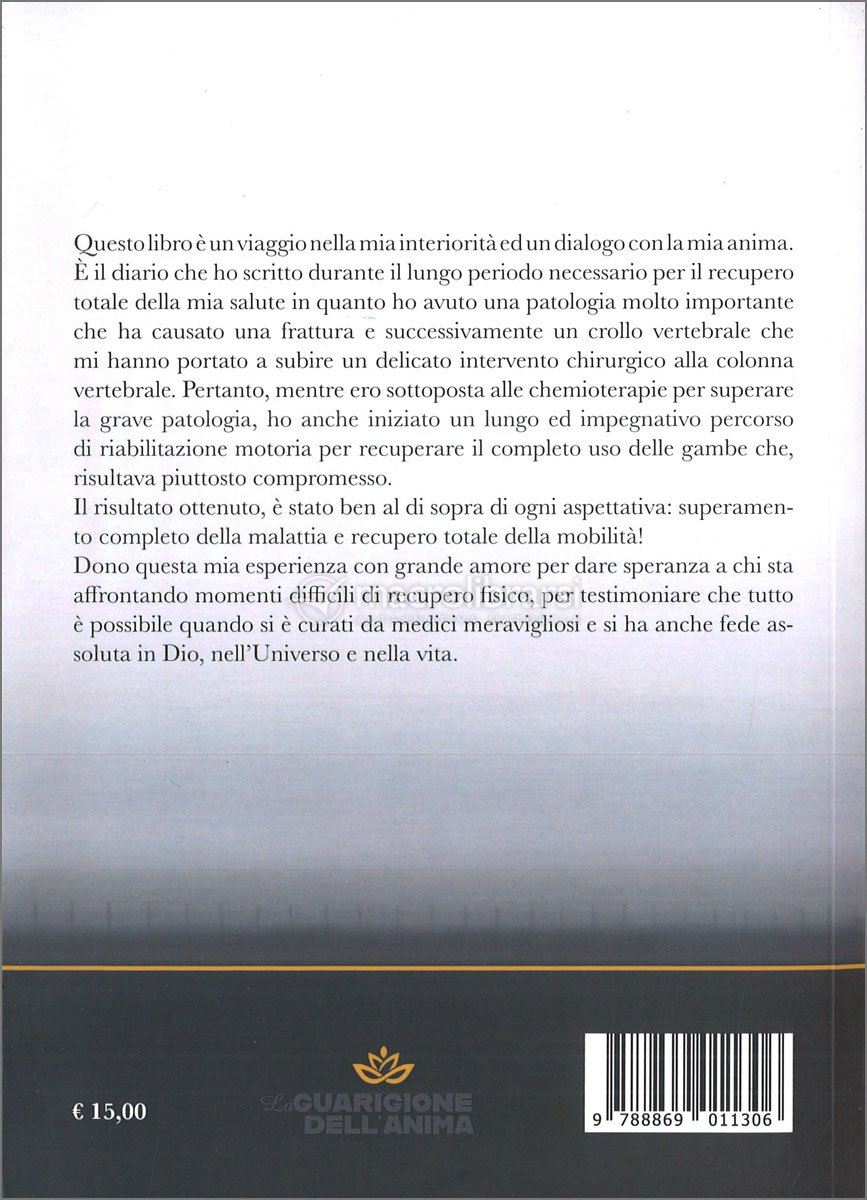 È il diario che ho scritto durante il lungo periodo necessario per il recupero totale della mia salute in quanto ho avuto una patologia molto importante che ha causato una frattura e successivamente un crollo vertebrale che mi hanno portato a subire un delicato intervento chirurgico alla colonna vertebrale.