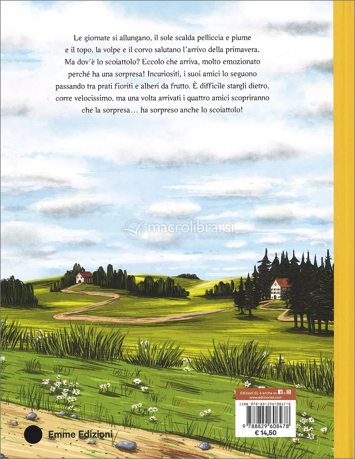 La storia si sviluppa come una piccola avventura condivisa, fatta di attesa, curiosità e movimento, mentre i protagonisti attraversano prati e alberi in fiore seguendo l’entusiasmo contagioso dello scoiattolo.