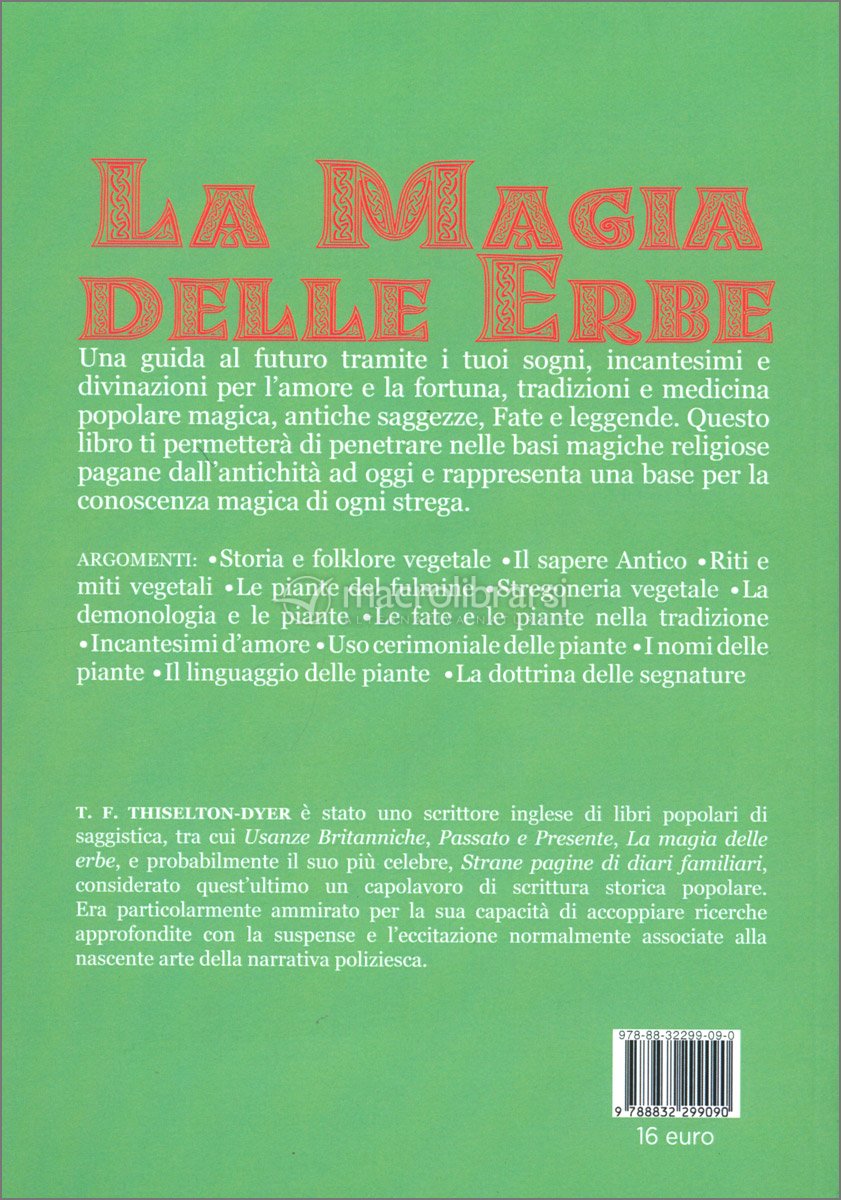 Questo libro è una giuda che racconta tante curiosità sulle piante e gli alberi , raccolte da varie culture abbracciando oriente ed occidente . Questo testo scorre agevolmente non stancando, ma denotando la grande cultura dell' autrice ed alla fine di ogni capitolo vi é una ricca bibliografia. L' unico appunto a mio avviso sono i caratteri di stampa veramente piccoli, ma viene più che ampiamente sorpassato dal contenuto. É una vera chicca da avere nella propria libreria magica e da rileggere sempre con piacere.