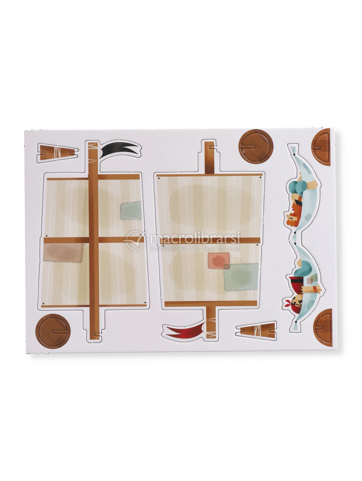I bambini possono comporre lo scenario, costruire una nave, assemblare i personaggi e partire subito alla conquista dei sette mari, mentre il libro incluso racconta curiosità, usi e segreti della vita da bucaniere.