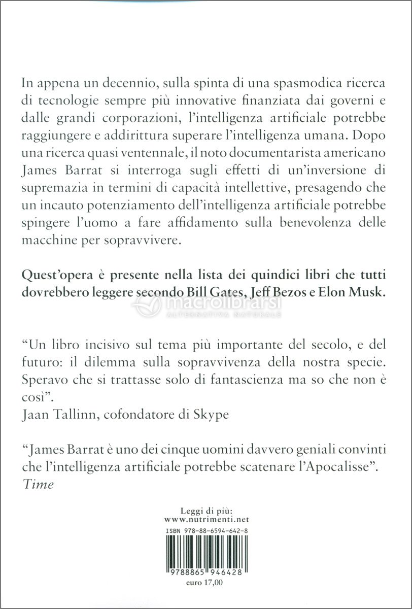 Per farlo, Barrat dà voce al ristretto gruppo di inventori e studiosi che, su basi scientifiche quanto logiche, ravvisano nell’avvento di una superintelligenza l’estinzione del genere umano.