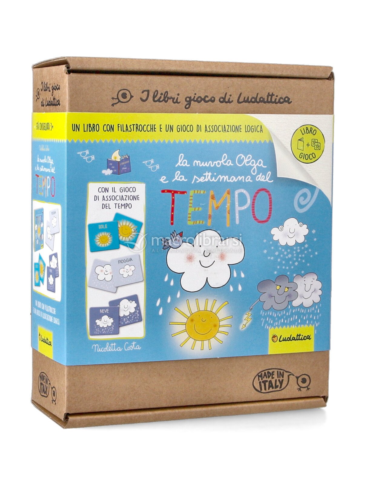 | Confezione | Libro cartonato + Memo logico di 24 tessere |