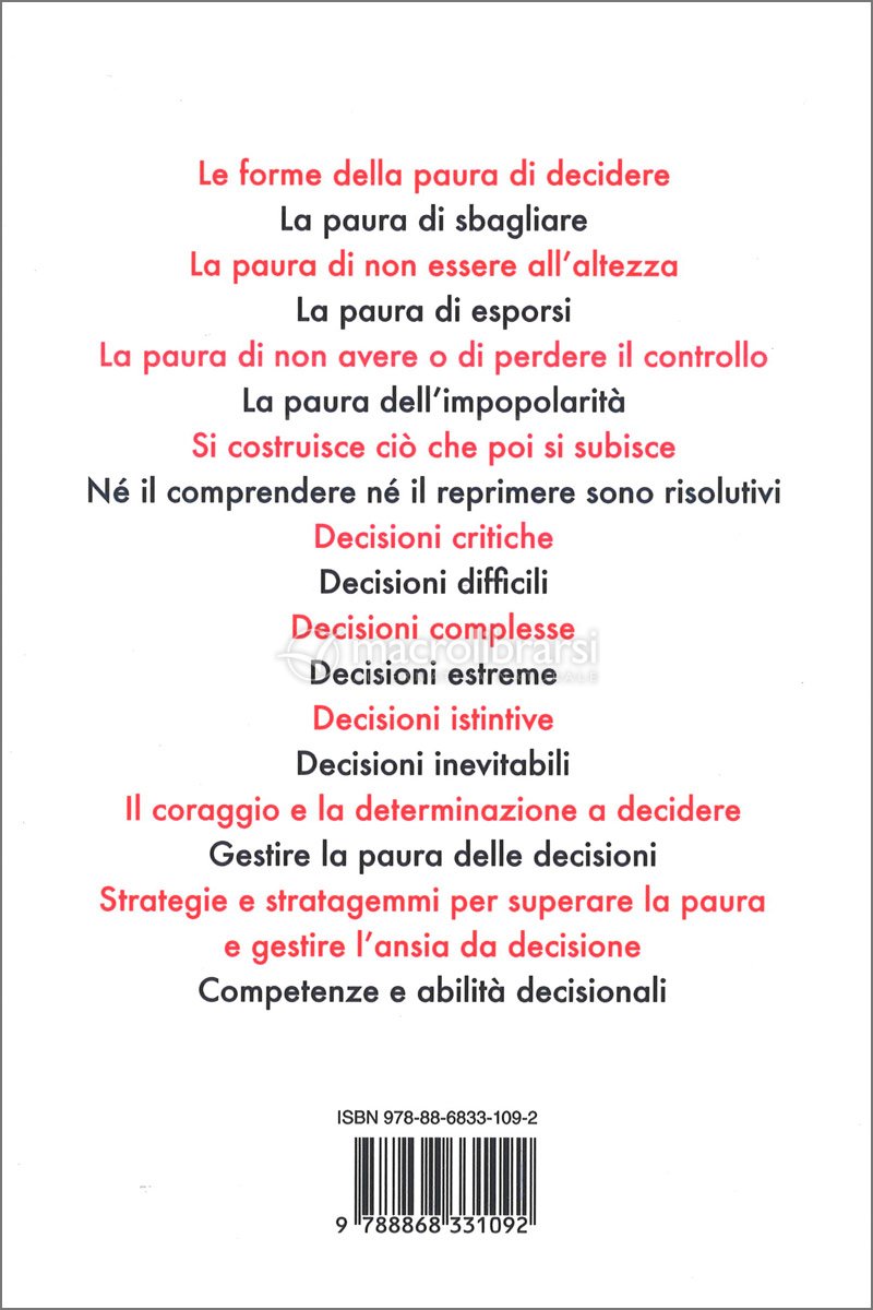 Un libro interessante sulle paure di decidere. L'autore ripercorre i termini e le differenze tra paura, ansia, panico, stress, angoscia. Mettendo in evidenza le possibili soluzioni e tecniche. Molte le citazioni che fanno riflettere. Interessanti i casi pratici finali.