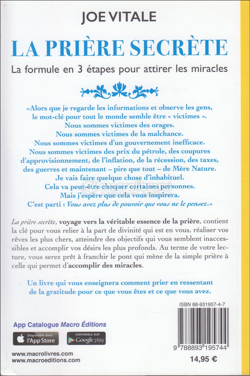 La prière secrète, voyage vers la véritable essence de la prière, contient la clé pour vous relier à la part de divinité qui est en vous, réaliser vos rêves les plus chers, atteindre des objectifs qui vous semblent inaccessibles et accomplir vos désirs les plus profonds.
