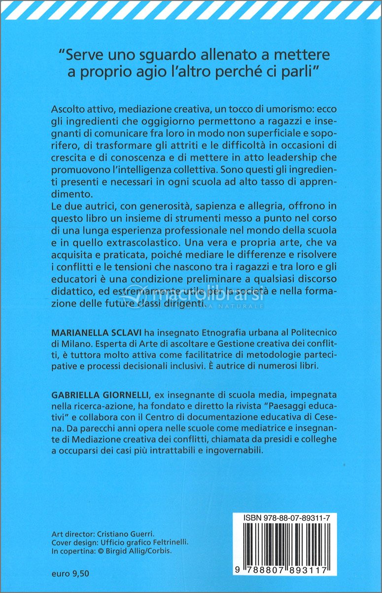 Ascolto attivo, mediazione creativa, un tocco di umorismo: ecco gli ingredienti che oggigiorno permettono a ragazzi e insegnanti di comunicare fra loro in modo non superficiale e soporifero, di trasformare gli attriti e le difficoltà in occasioni di crescita e di conoscenza e di mettere in atto leadership che promuovono l'intelligenza collettiva.