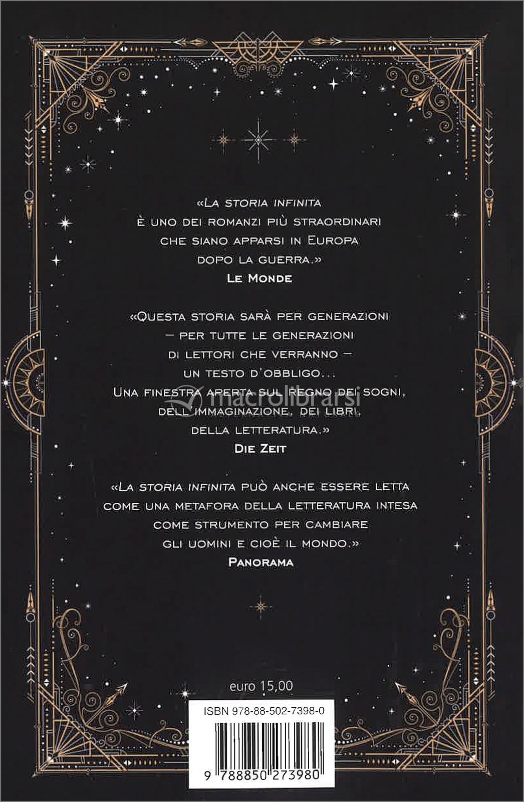 Molti non sanno ma Michael Ende ha approfondito nel corso della sua vita l'esoterismo studiando varie scuole iniziatiche (teosofia, antroposofia ecc.). Ciò ad un occhio attento lo si evince da tutti i suoi lavori e la Storia Infinita è fra questi. La storia è la classica narrazione che ha più chiavi di lettura, da una più superficiale a una molto più profonda che per chi è avvezzo coglierà all'istante rendendosi conto di non star leggendo una classica opera fantasy. Tralasciando quindi le ormai note della qualità eccelsa della storia, questa edizione è la migliore per usufruirne perché vicina a come era stata concepita dall'autore a livello grafico. In pratica il testo è scritto in due colori uno rosso e uno verde per differenziare i momenti che avvengono sulla Terra e quelli su Fantasia. Ogni capitolo inizia con una lettera dell'alfabeto e prosegue così fino alla fine. La sovraccoperta, la rilegatura e anche il prezzo sono ottimi. Assolutamente da avere e leggere.