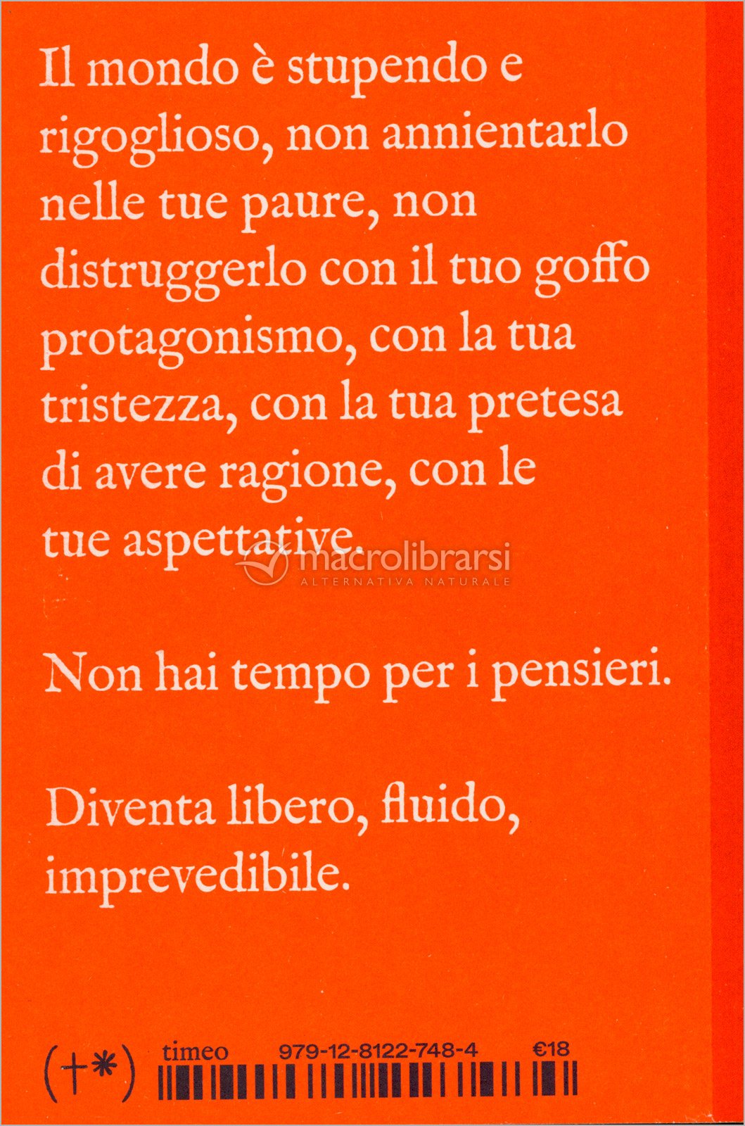 Il mondo è stupendo e rigoglioso, non annientarlo nelle tue paure, non distruggerlo con il tuo goffo protagonismo, con la tua tristezza, con la tua pretesa di avere ragione, con le tue aspettative. Non hai tempo per i pensieri. Diventa libero, fluido, imprevedibile.