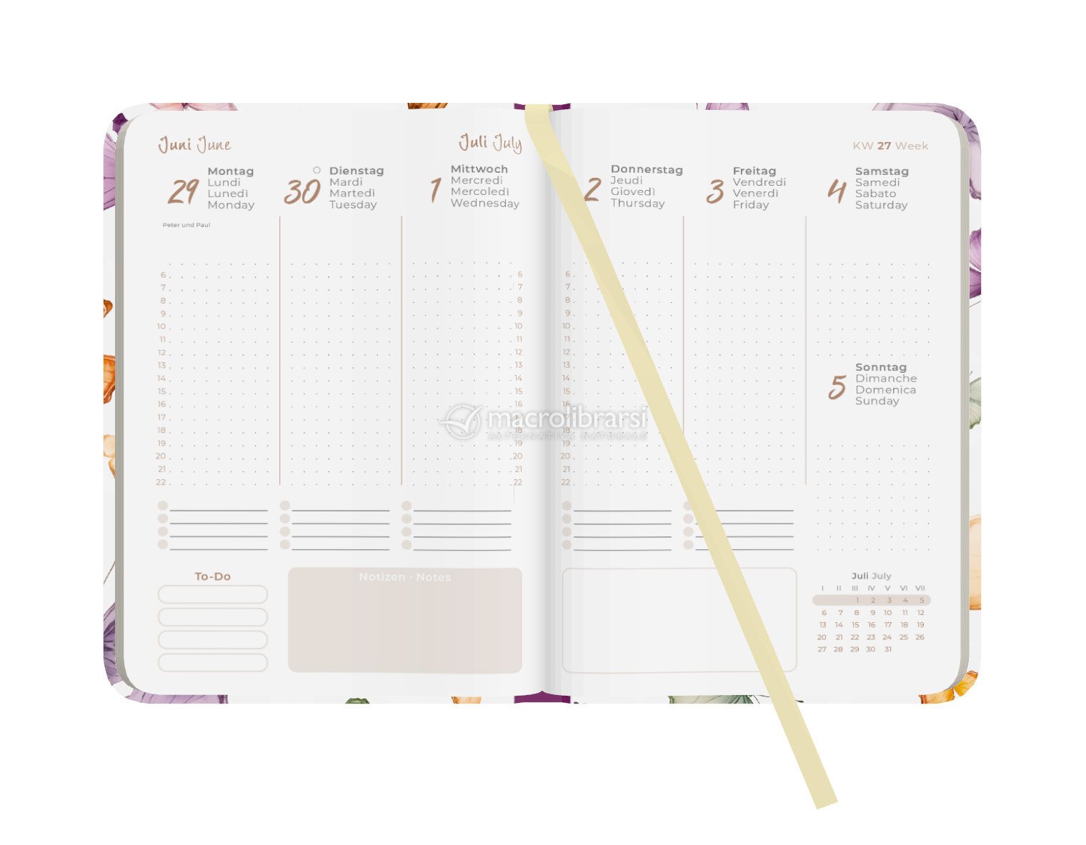 - Vista settimanale chiara: 1 settimana per doppia pagina con suddivisione oraria dalle 06:00 alle 22:00 – perfetta per una pianificazione giornaliera strutturata
