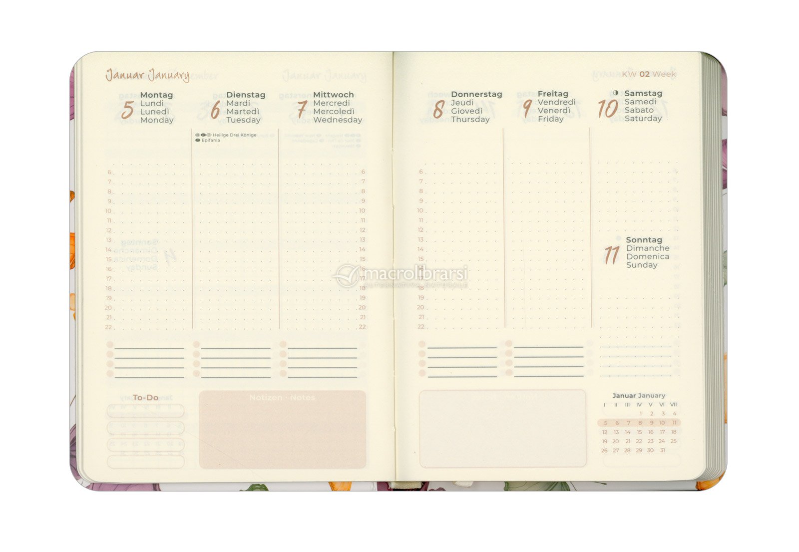 Il Lady Journal Butterfly 2026 combina un delicato motivo a farfalla con una pianificazione settimanale chiara e funzionale.