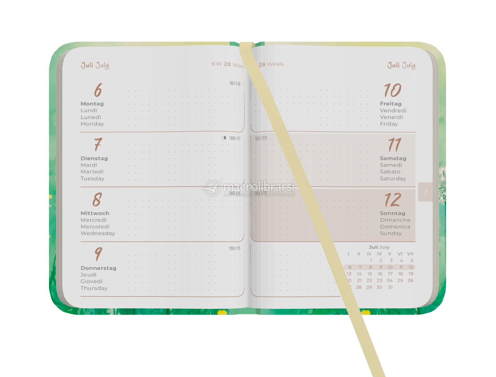 - Dettagli pratici: segnalibro a nastro, angoli delicatamente arrotondati, ampio spazio per appunti e indirizzi