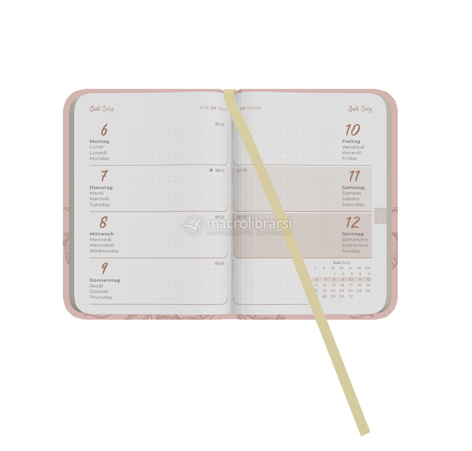 - Dettagli pratici: segnalibro a nastro, angoli finemente arrotondati, ampio spazio per appunti e indirizzi