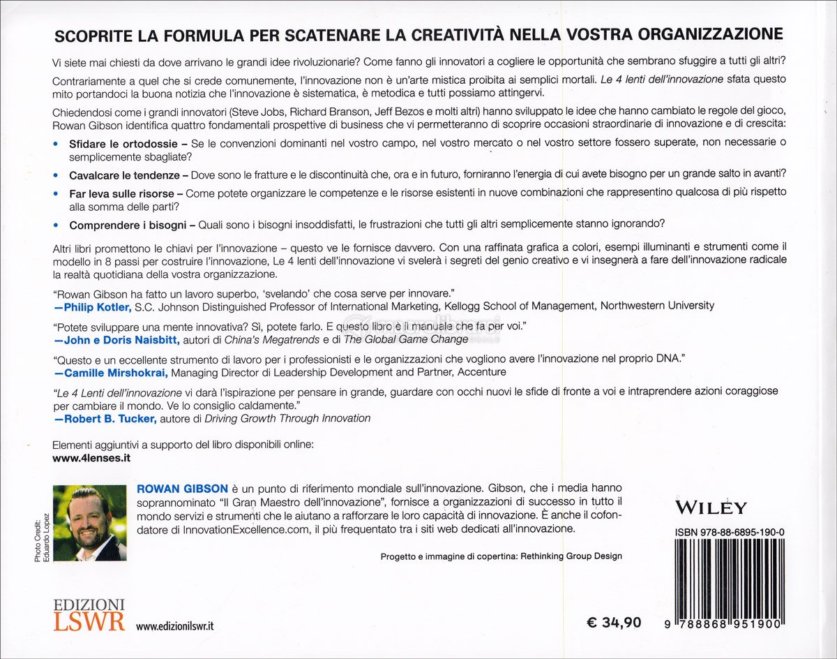 Con un design unico a colori, esempi che stimolano la riflessione e strumenti come il modello 8-Step per costruire un'innovazione dirompente, Le 4 lenti dell'innovazione insegna a capire come si sviluppa il genio creativo e mostra come rendere l'innovazione radicale una realtà quotidiana nella propria organizzazione.