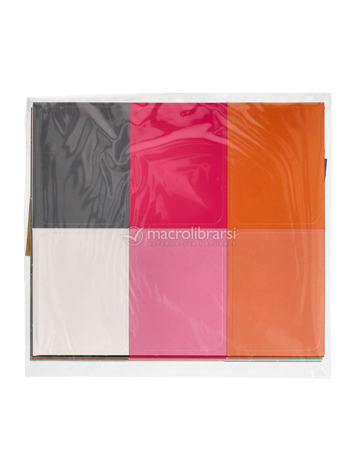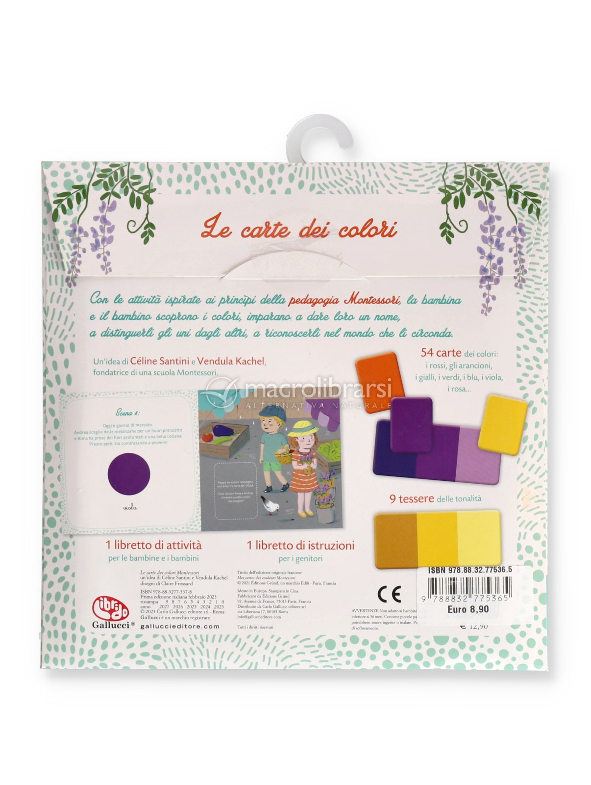 La robusta busta in cartoncino contiene 54 carte dei colori, 9 tessere delle tonalità, un libretto di attività per i bambini e le istruzioni dettagliate per gli adulti.