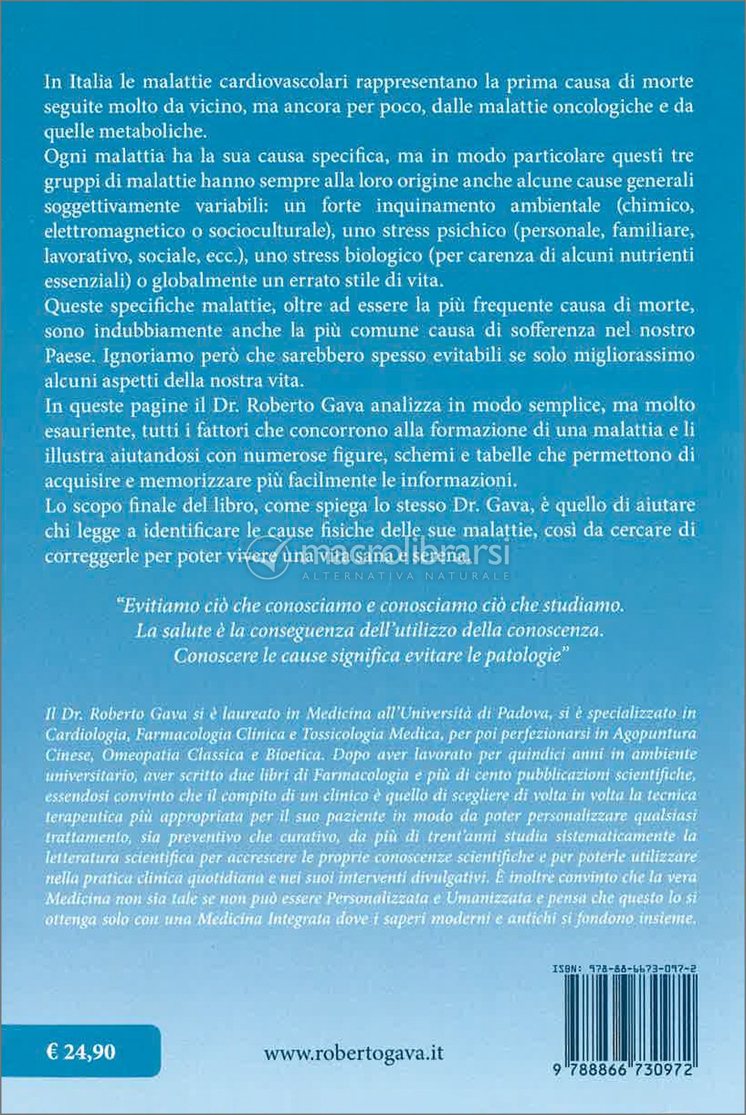 Leggere questo libro mi ha resa consapevole degli errori che faccio e facciamo ogni giorno. Ho capito come alcune abitudini ( sia alimentari che stili di vita ) siano la causa di malattie gravissime Questo libro dovrebbero farlo leggere nelle scuole. Complimenti al Dr Gava per l’accuratezza delle informazioni