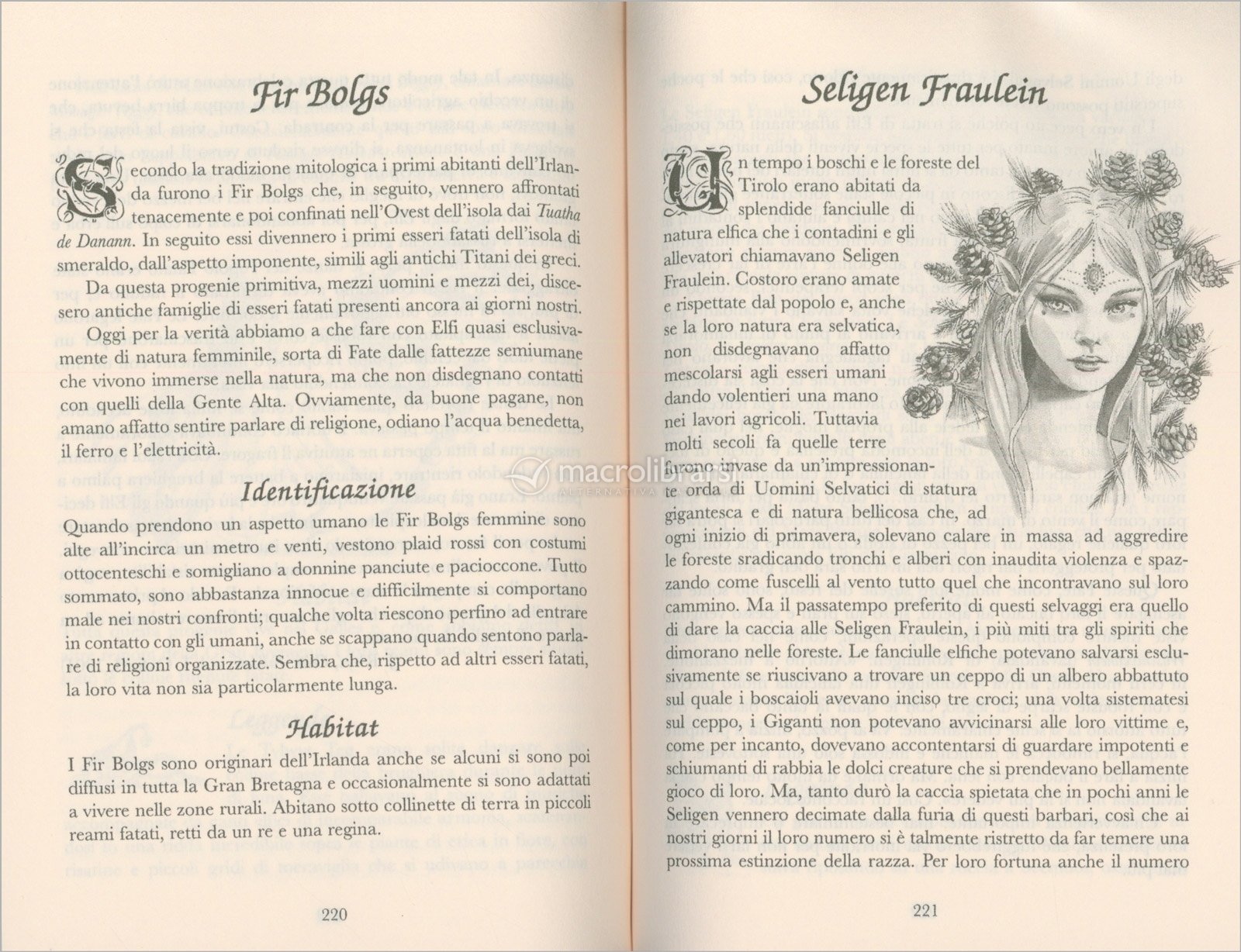 Tra le sue pagine il lettore incontrerà le immagini e le storie di elfi, gnomi, fate, folletti, nani e spiriti inquieti, figure che da secoli popolano boschi, brughiere e lande antiche.