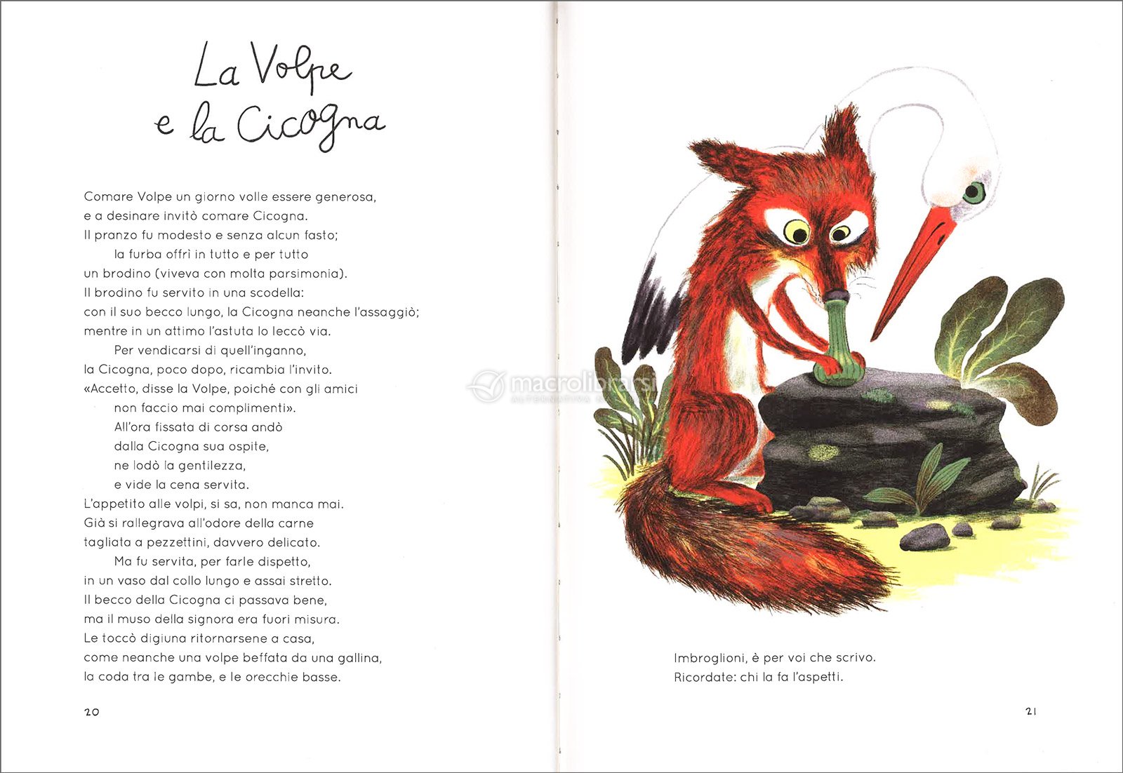 La volpe, il corvo, il leone e gli altri animali, ora prepotenti, ora buffi, o in difficoltà, in queste favole mettono in mostra i loro caratteri esemplari, creando uno zoo (umano) in cui da secoli i lettori grandi e piccoli si rispecchiano alla perfezione.