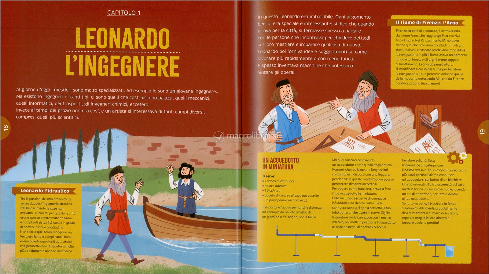 Un libro per scoprire i progetti, così com'erano negli schizzi di Leonardo da Vinci, e come sono oggi... con tanti esperimenti per realizzare le tue macchine e capire come funzionano!