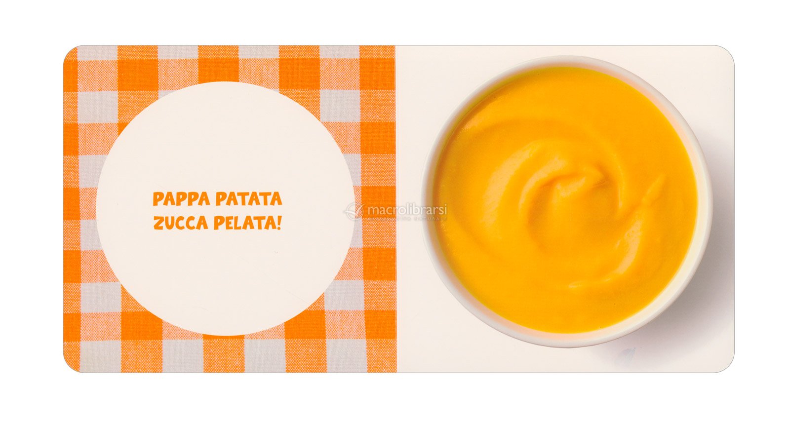 Le immagini semplici e colorate raccontano il momento della pappa come un gesto quotidiano fatto di attenzione, cura e relazione, aiutando il bambino a riconoscere sapori, consistenze e rituali.