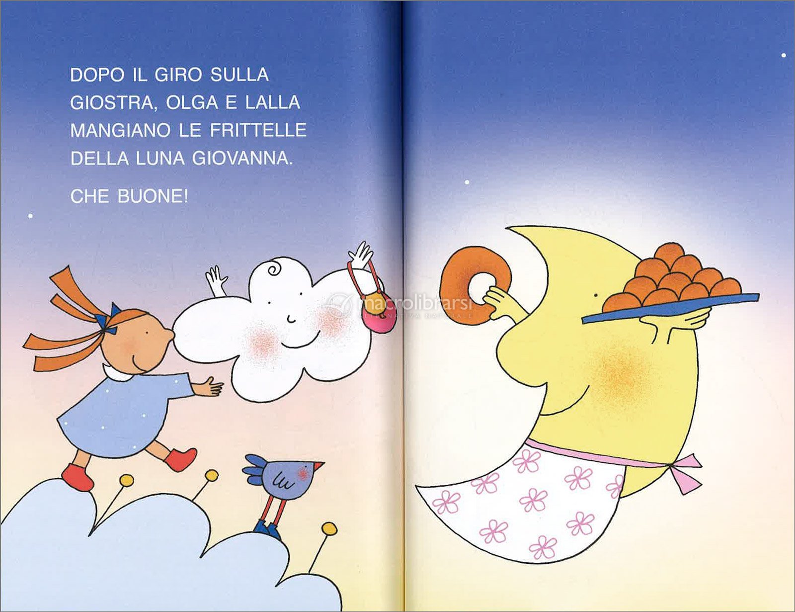 In queste pagine i piccoli lettori incontrano la simpatica Nuvola Olga, un personaggio curioso e gentile che vive nel cielo e ama osservare il mondo dall’alto.