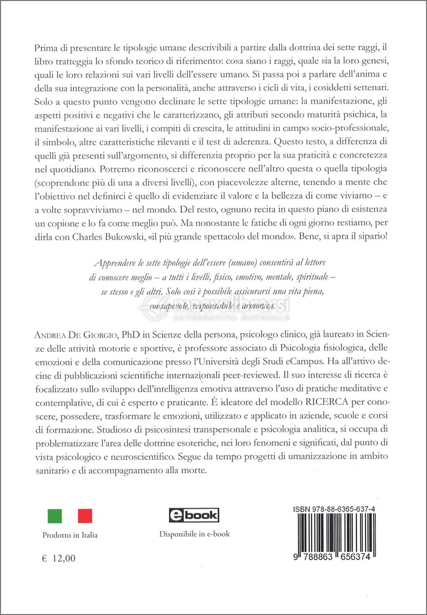 Apprendere le sette tipologie dell’essere (umano) consentirà al lettore di conoscere meglio – a tutti i livelli, fisico, emotivo, mentale, spirituale – se stesso e gli altri. Solo così è possibile assicurarsi una vita piena, consapevole, responsabile e armonica.