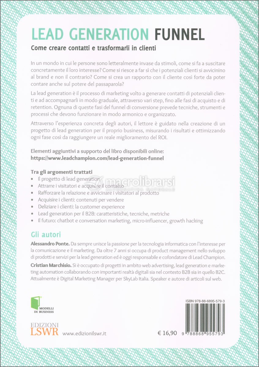 Attraverso l’esperienza concreta degli autori, il lettore sarà guidato nella creazione di un progetto di lead generation per il proprio business, misurando i risultati e ottimizzando ogni fase così da raggiungere un reale miglioramento del ROI.