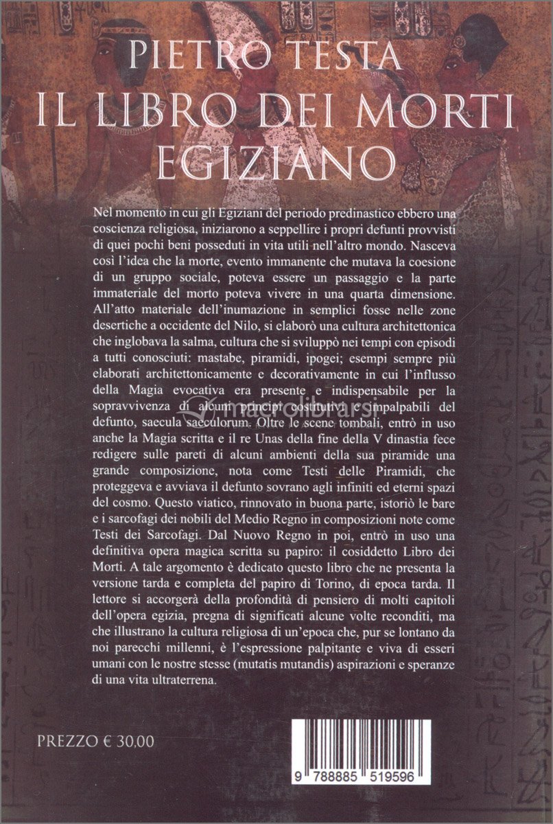 Libro dei Morti: raccolta di testi funerari di epoche diverse, contenente formule magiche, inni e preghiere che, per gli antichi egizi, guidavano e proteggevano l'anima (Ka) nel suo viaggio attraverso la regione dei morti. Secondo la tradizione, la conoscenza di questi testi permetteva all'anima di scacciare i demoni che le ostacolavano il cammino e di superare le prove poste dai 42 giudici del tribunale di Osiride, dio degli inferi.