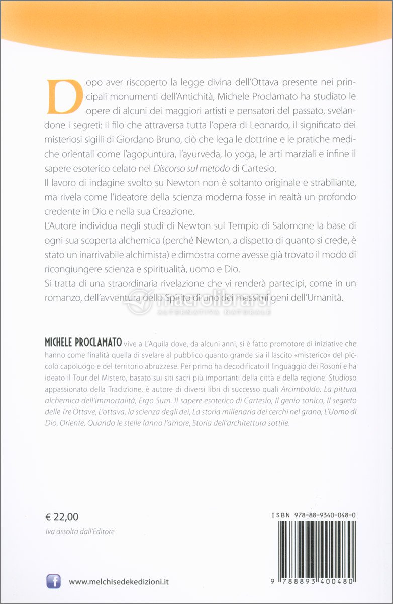 L'Autore individua negli studi di Newton sul Tempio di Salomone, la base di ogni sua scoperta alchemica (perché Newton, a dispetto di quanto si crede, è stato un inarrivabile alchimista), e di come tramite i principi della legge dell'Ottava, avesse già trovato l'unione tra scienza e spiritualità, tra l'uomo e Dio.
