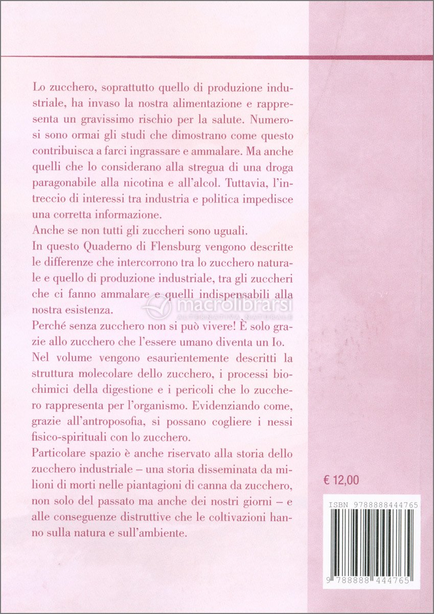 In questo Quaderno vengono descritte le differenze che intercorrono fra lo zucchero naturale e quello di produzione industriale, tra gli zuccheri che ci fanno ammalare e quelli indispenzabili alla nostra eistenza.