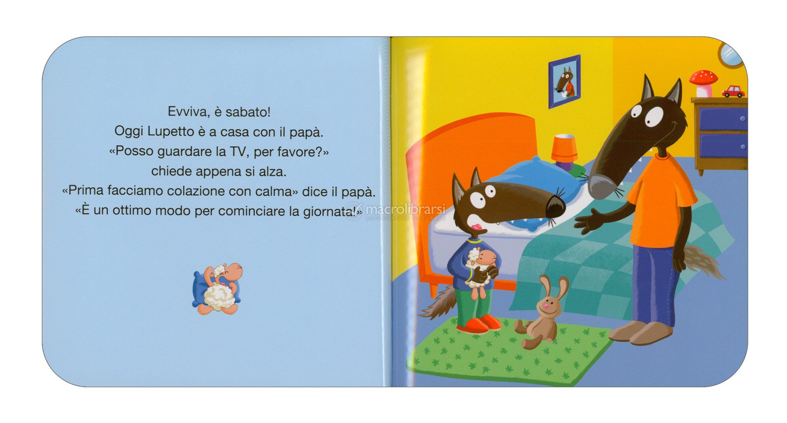 Una storia tenera e birichina di lupetto. Lupetto oggi vuole guardare la TV o giocare con il telefono, ma il papà gli dice di no.