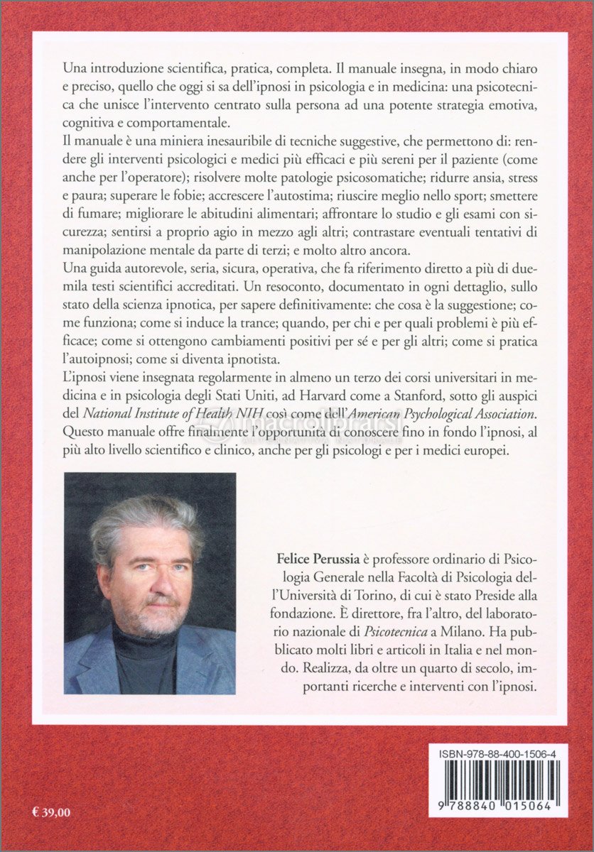 Il manuale insegna, in modo chiaro e preciso, quello che oggi si sa dell'ipnosi in psicologia e in medicina: una psicotecnica che unisce l'intervento centrato sulla persona ad una potente strategia emotiva, cognitiva e comportamentale.
