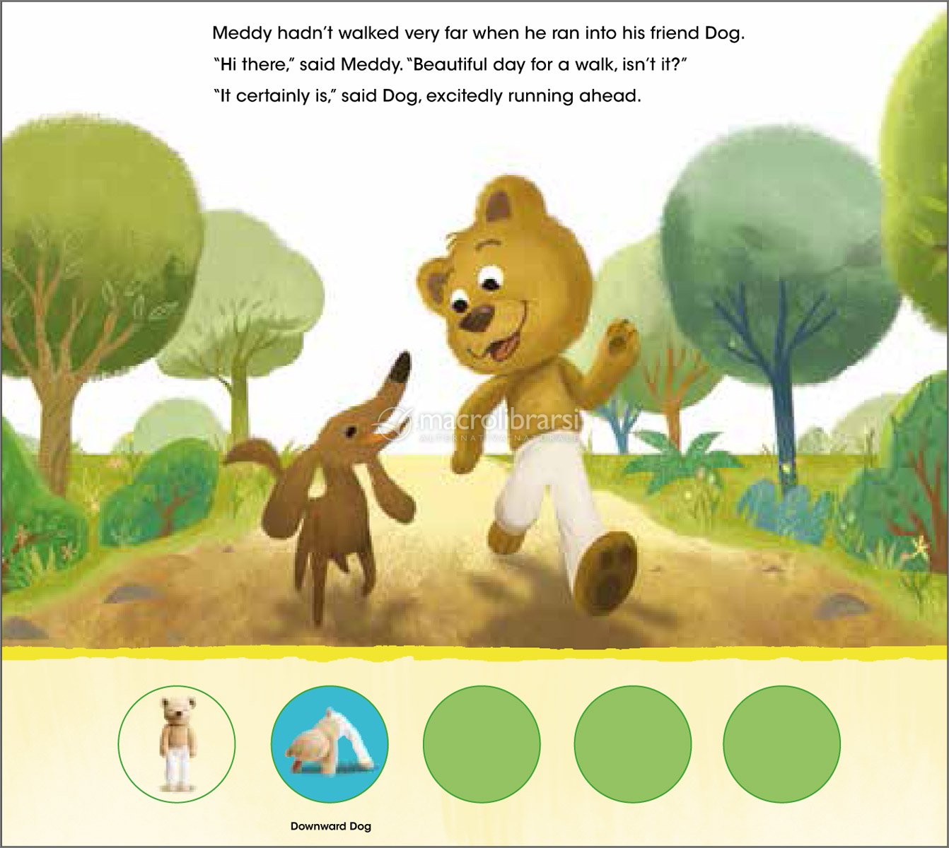 Segui le avventure di Meddy mentre incontra i suoi amici della foresta e insegna loro le sue posizioni yoga preferite!