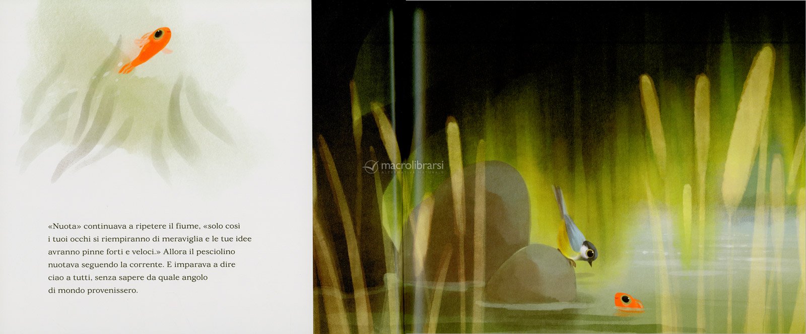 «C'era una volta un fiume… Un giorno il fiume trovò un piccolo pesce abbandonato e tremante. Il fiume decise di prendersi cura di lui».