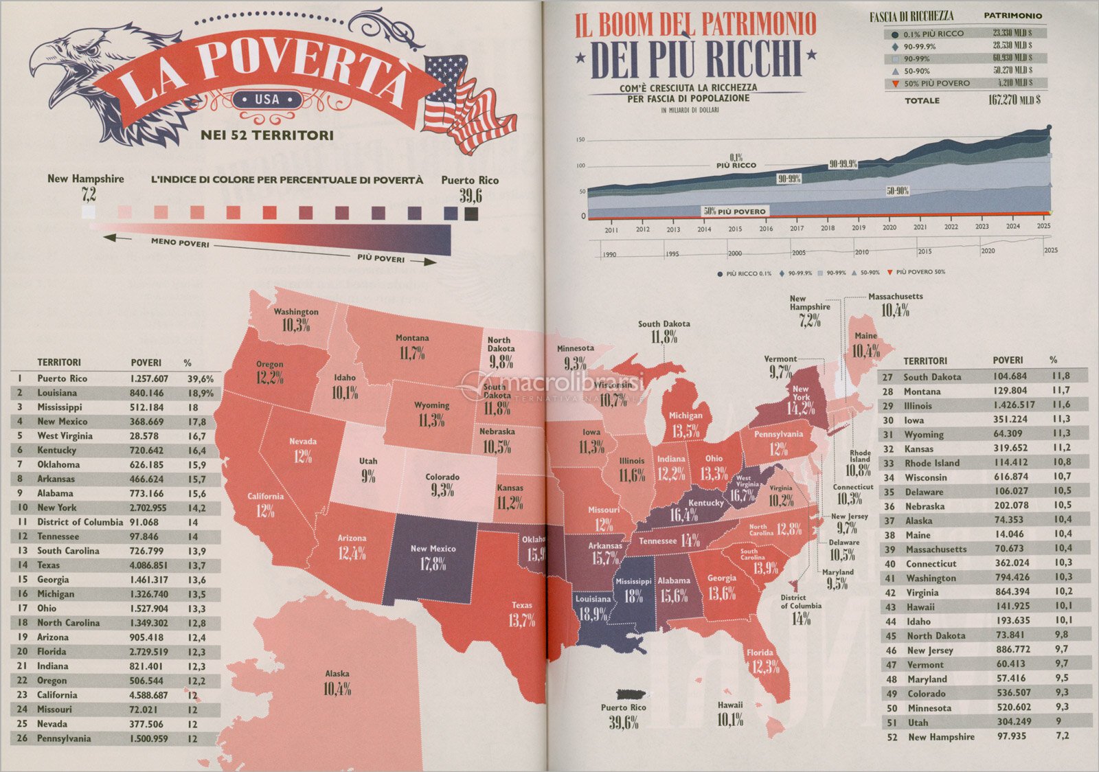 Le pagine di questo numero accompagnano il lettore dentro un’America meno visibile: quella dei movimenti “No Kings”, dell’“altra faccia” del Paese, lontana dalla retorica Maga e vicina alle periferie dimenticate. Ampio spazio è dedicato anche alle retate dell’ICE, la polizia anti-immigrazione, con un reportage che documenta metodi brutali e il loro impatto fino dentro i tribunali.