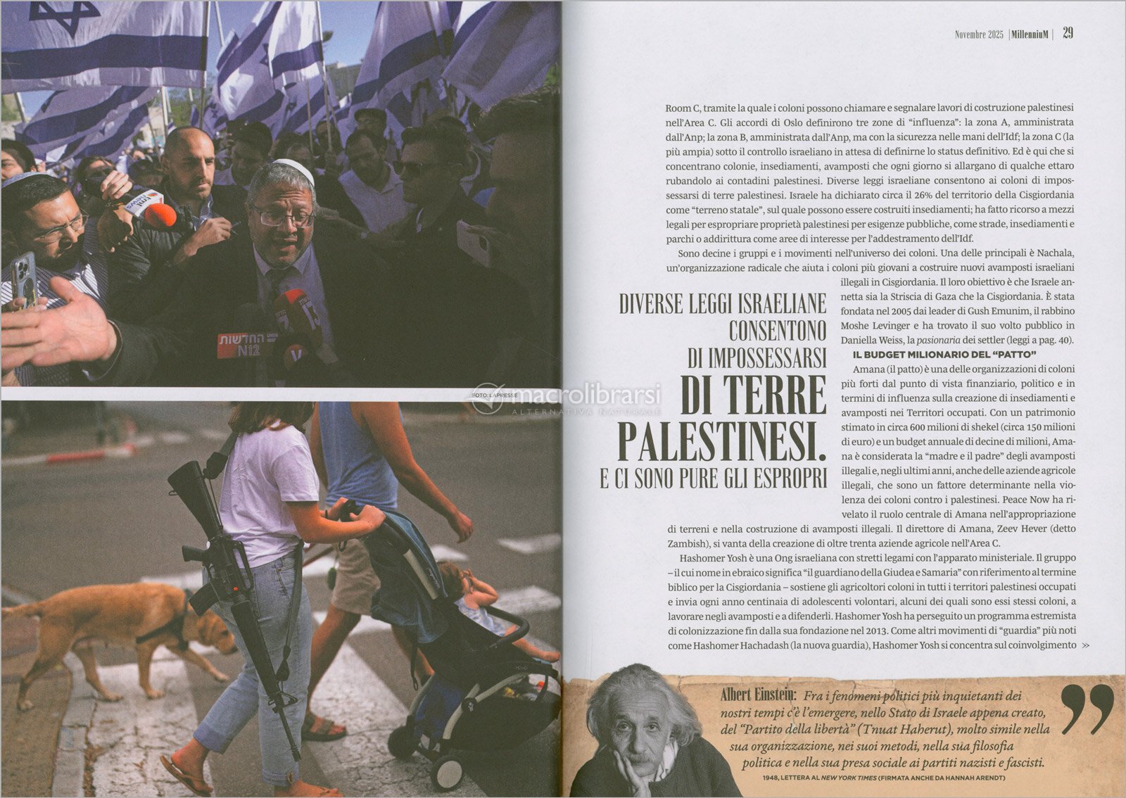 Dopo mesi di inchieste, reportage e approfondimenti sul conflitto israelo-palestinese, MillenniuM torna a Gaza e nei territori occupati per raccontare l’altra faccia del conflitto, quella di cui si parla ancora troppo poco: le violenze dei coloni israeliani in Cisgiordania, spesso impunite, sistemiche e tollerate.