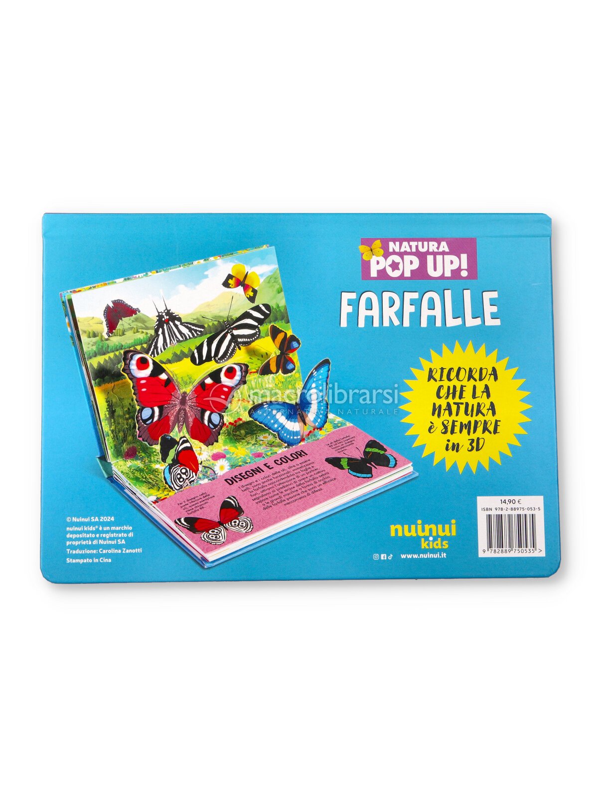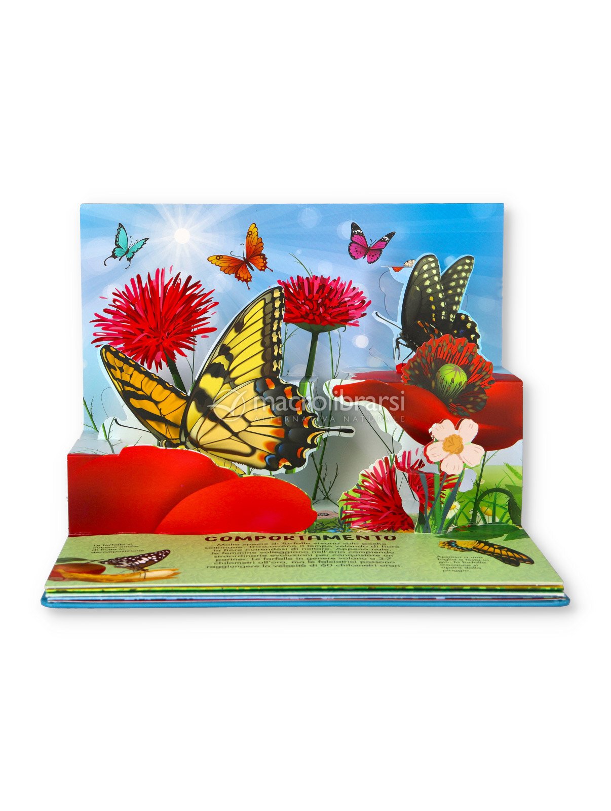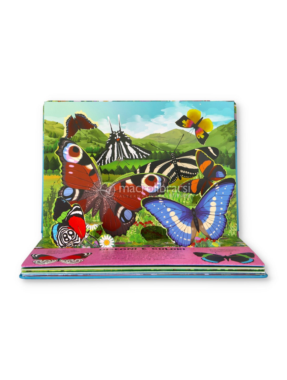 Uno dei più colorati insetti presenti in natura, la farfalla, viene presentato in 8 scenari pop up, realizzati su vari livelli per dare il senso della prospettiva.